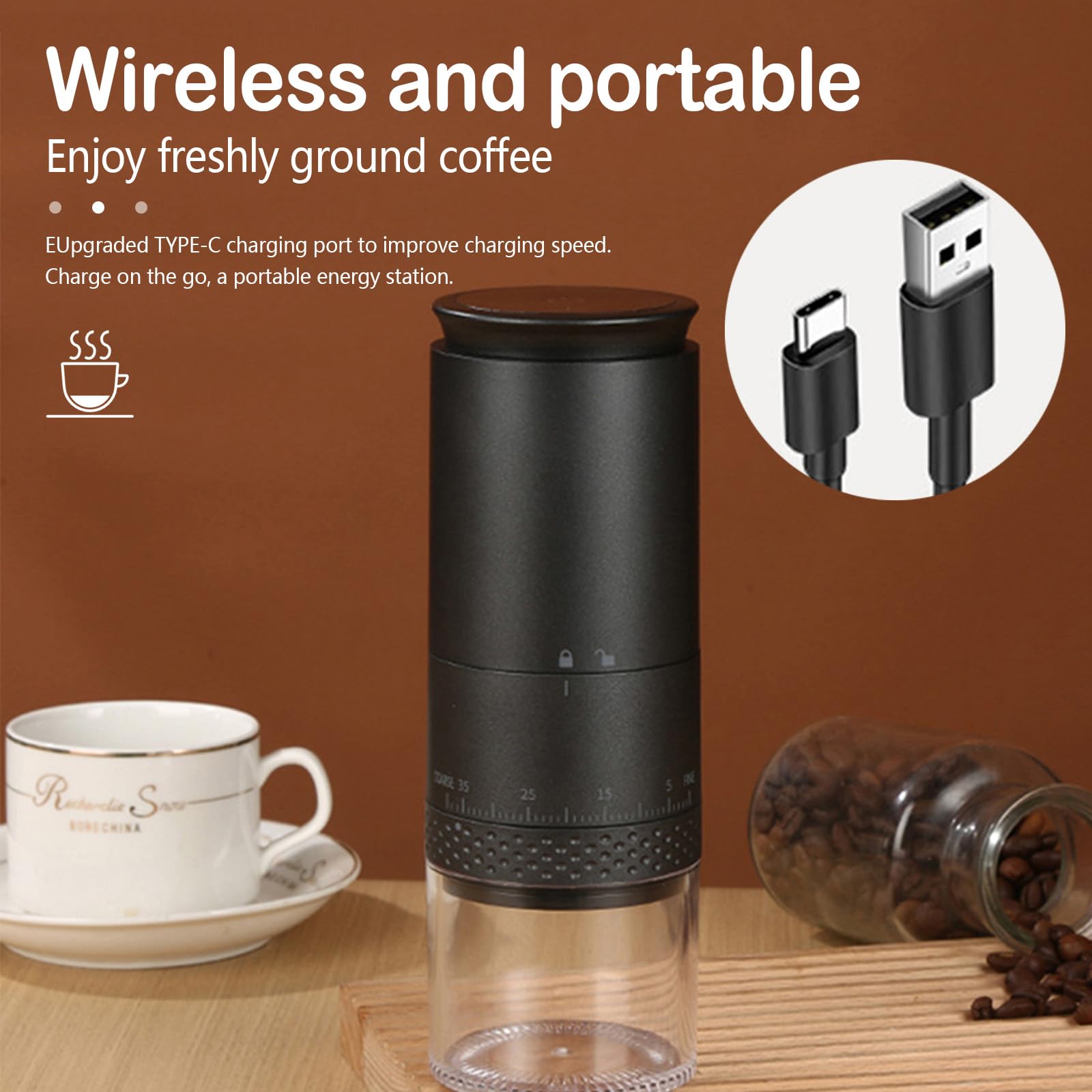 Elektrische Kaffeemühle Mit Keramik-Mahlwerk - 38 Stufen Einstellbar & Wiederaufladbar