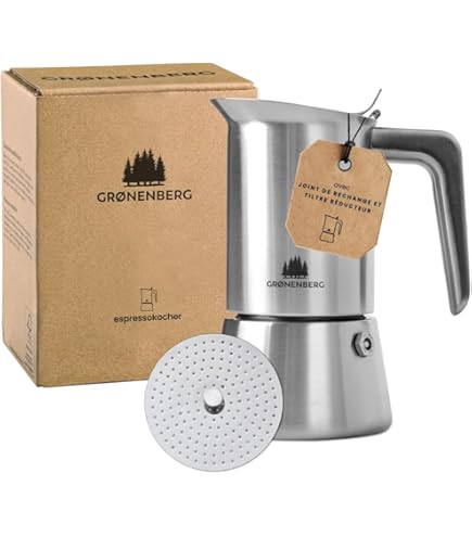Echten italienischen Kaffee ganz einfach zu Hause genießen! Diese klassische Moka-Kanne von HOME SOLAZZIA bringt das Café-Feeling in deine Küche. Aus robustem Aluminium gefertigt, ist sie perfekt für Gas-, Elektro- und Glaskeramikherde (nicht für Induktion). Mit 450ml Fassungsvermögen bereitest du damit locker 9 Tassen köstlichen Kaffee zu. Die matte Optik sieht super stylisch aus und die einfache Reinigung macht sie zum perfekten Daily-Begleiter. Einfach Wasser und Kaffee einfüllen, auf den Herd stellen und wenige Minuten später duftet es herrlich nach frischem Espresso. Perfekt für morgens, nachmittags oder wenn Besuch kommt - so schmeckt Italien!