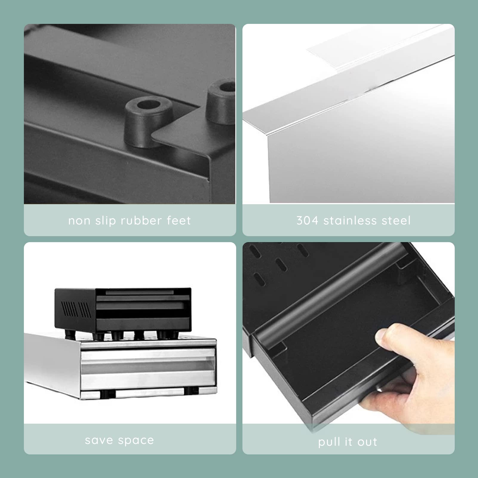 Endlich Ordnung an der Kaffeetheke! Diese praktische Espresso-Klopfbox mit Schublade fängt alle Kaffeereste sauber auf. Mit 28x18x5cm bietet sie reichlich Stauraum und die herausnehmbare Schublade macht die Reinigung zum Kinderspiel. Anti-Rutsch-Pads an der Unterseite sorgen für stabilen Stand und reduzieren Geräusche beim Klopfen. Die Wärmeableitungs-Löcher verhindern Rücksaugphänomene. Aus robustem Eisen gefertigt, in schlichter schwarzer Optik. Perfekt für Siebträger-Maschinen zu Hause, im Café oder Büro. Deine Arbeitsplatte bleibt sauber - dein Kaffee genießbar!