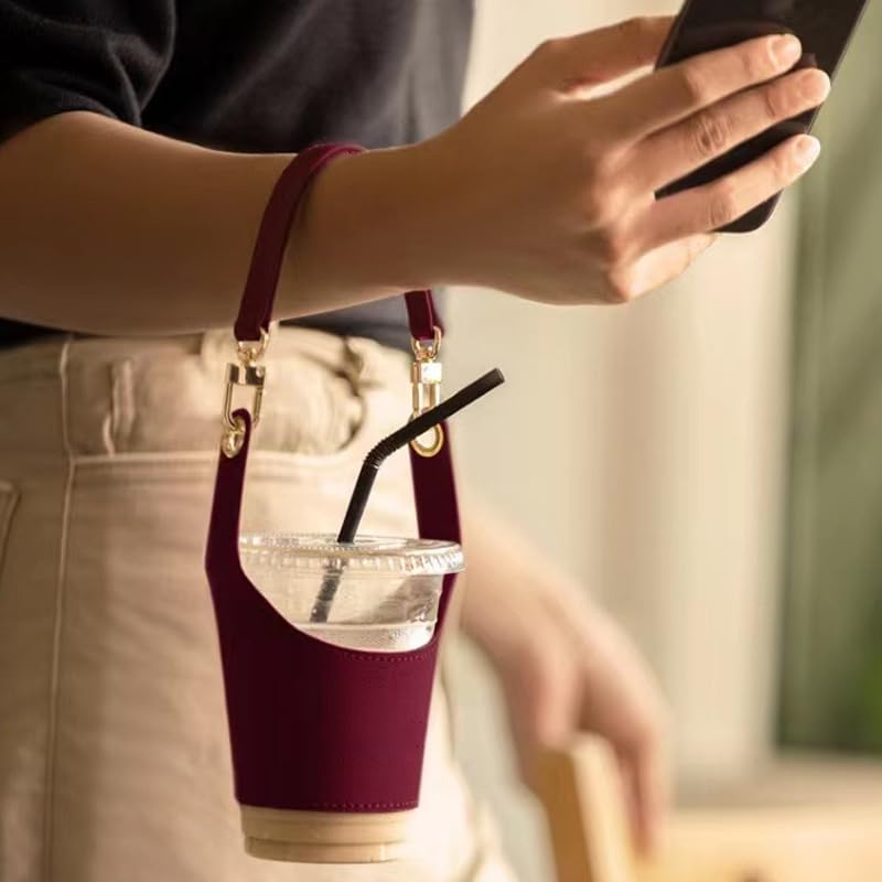Leder Kaffeetassenhülle Mit Griff - Verstellbarer Becherhalter PU-Leder