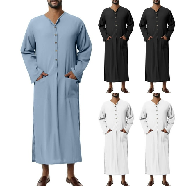 Herren Kaftan Thobe - Traditionelle Muslimische Robe In Schwarz & Weiß
