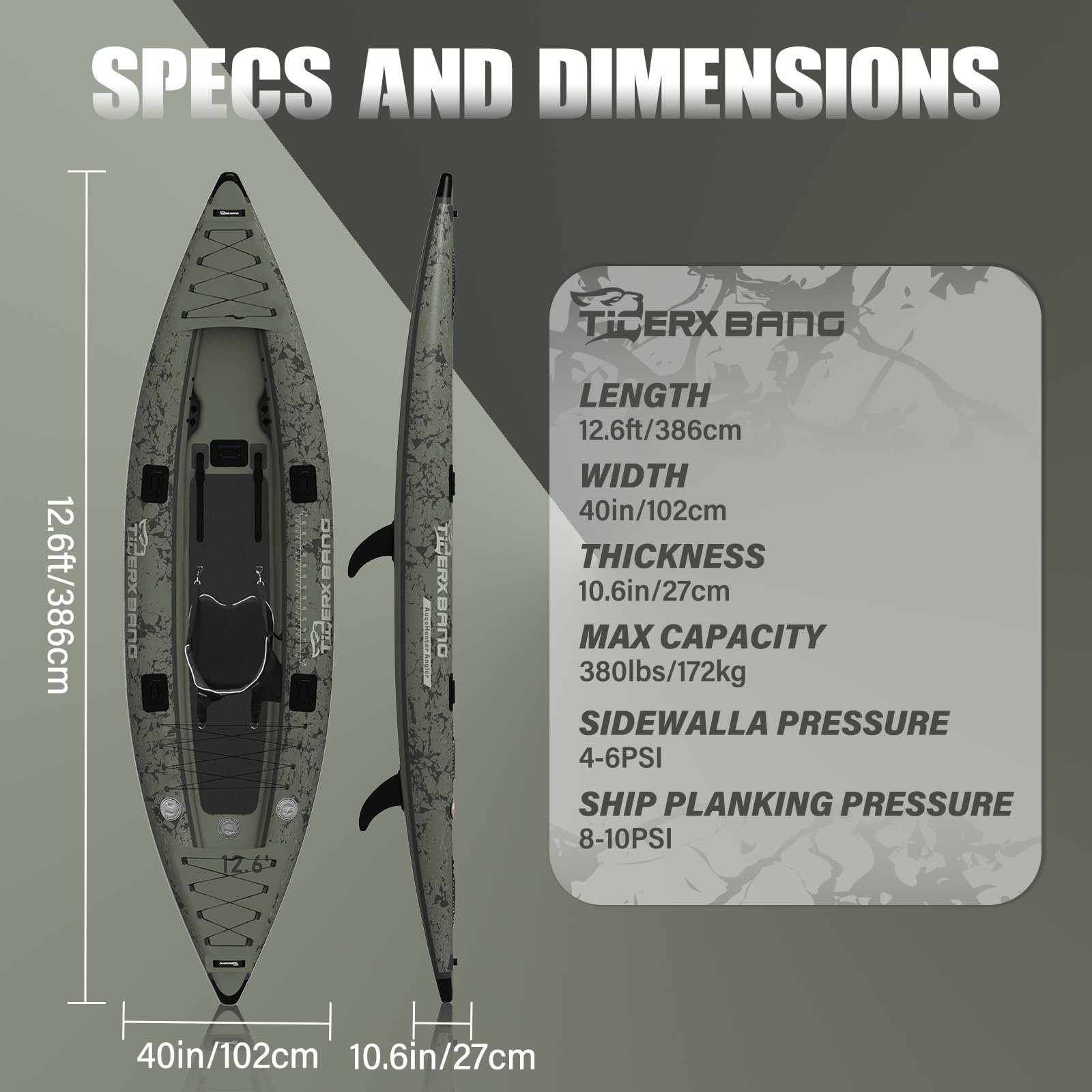 Wasserratten, dieses TIGERXBANG aufblasbare Kajak ist ein absoluter Traum! Mit 386x102x27cm bietet es genug Platz für Erwachsene und Kinder gleichermaßen. Das Komplettset enthält alles, was du brauchst: Handpumpe, Aluminium-Paddel, praktischen Rucksack und eine multifunktionale Basis. Der abnehmbare Sitz sorgt für bequemes Paddeln, egal ob du angeln, touren oder einfach nur auf dem Wasser entspannen willst. Das Kajak lässt sich schnell auf- und abbauen und passt zusammengepackt in den mitgelieferten Rucksack - super für Transport und Lagerung. Perfekt für Seen, Flüsse oder ruhige Küstengewässer. Egal ob du Anfänger oder erfahrener Paddler bist - dieses Kajak macht einfach Spaß! Einfach aufblasen, ins Wasser lassen und den Tag genießen - mehr Freiheit auf dem Wasser geht kaum!