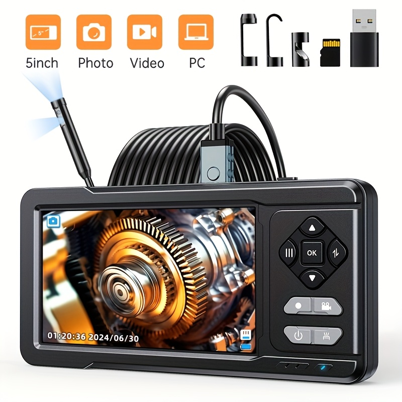 Endoskop Kamera Dual Lens - 5 Zoll IPS Display Wasserdicht IP67