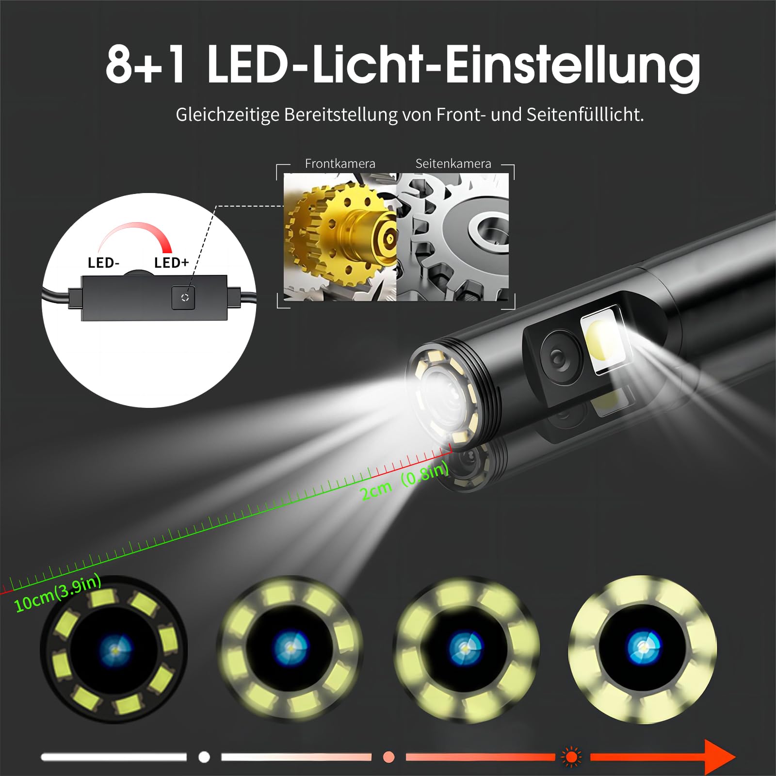 Brauchst du Einblick in enge Räume? Diese Dual-Lens Endoskop-Kamera zeigt dir, was das Auge sonst nicht sieht! Mit zwei 1080P Kameras an einer 8mm Sonde - eine vorne, eine seitlich - siehst du alles aus verschiedenen Winkeln. Der 5 Zoll IPS Display ist sonnenlichttauglich und zeigt gestochen scharfe Bilder in Echtzeit. Das 5 Meter lange Kabel ist halbsteif, hält also die Position wenn du es biegst. Wasserdicht nach IP67 - kein Problem bei Feuchtigkeit oder kurzzeitigem Eintauchen. Mit praktischem Magnet und Greifhaken kannst du sogar kleine Teile bergen. Bis zu 4 Stunden Akkulaufzeit, und das beste: Keine App oder WLAN nötig, einfach einschalten und loslegen. Perfekt für Mechaniker, Handwerker oder Heimwerker - ob für Motoren, Rohre oder schwer zugängliche Stellen. Sieht mehr, spart Zeit und Ärger!