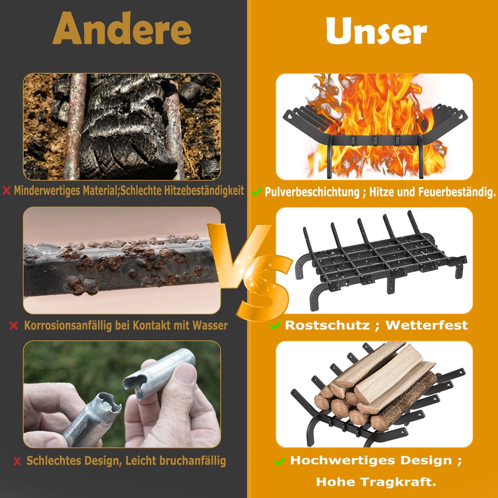 Perfektes Feuer dank diesem robusten Kaminrost! Aus hochfestem Stahl mit schwarzer Pulverbeschichtung, hält bis zu 800°C stand und ist absolut rostfrei. Mit 41x31x11cm und 50kg Tragkraft ideal für Kamin und Lagerfeuer. Das V-förmige Design hält das Holz nah am Feuer, 7cm Bodenabstand sorgt für super Luftzirkulation. Einfach zu montieren, leicht zu reinigen und platzsparend zu verstauen. Ob gemütlicher Kaminabend oder Camping-Trip - hier brennt alles perfekt!