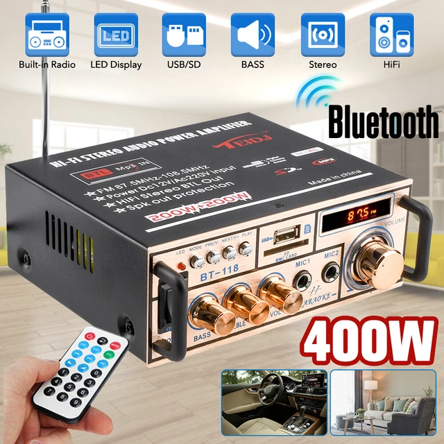 Dieser BAOCHADA 5-Kanal-Verstärker bringt Kino-Feeling in dein Wohnzimmer! Mit satten 600W Maximalleistung und Bluetooth 5.0 streamst du deine Musik einfach drahtlos von Smartphone oder Tablet. Der verbesserte Audio-Chip sorgt für kristallklaren Sound mit minimaler Verzerrung. Anschlüsse für alles, was du brauchst: SD-Karte, USB, RCA, AUX und sogar 2 Mikrofoneingänge für Karaoke-Abende. Das Gehäuse aus Aluminium-Legierung sieht nicht nur edel aus, sondern sorgt mit den vielen Lüftungsschlitzen auch für optimale Kühlung. Mit Fernbedienung und LED-Display bedienst du ihn bequem von der Couch aus. Perfekt für Heimkino, Partys oder einfach zum Musikhören. Maße: 42,7x28x6,6cm - findet in jedem Wohnzimmer Platz. Hol dir den ultimativen Sound für dein Zuhause!