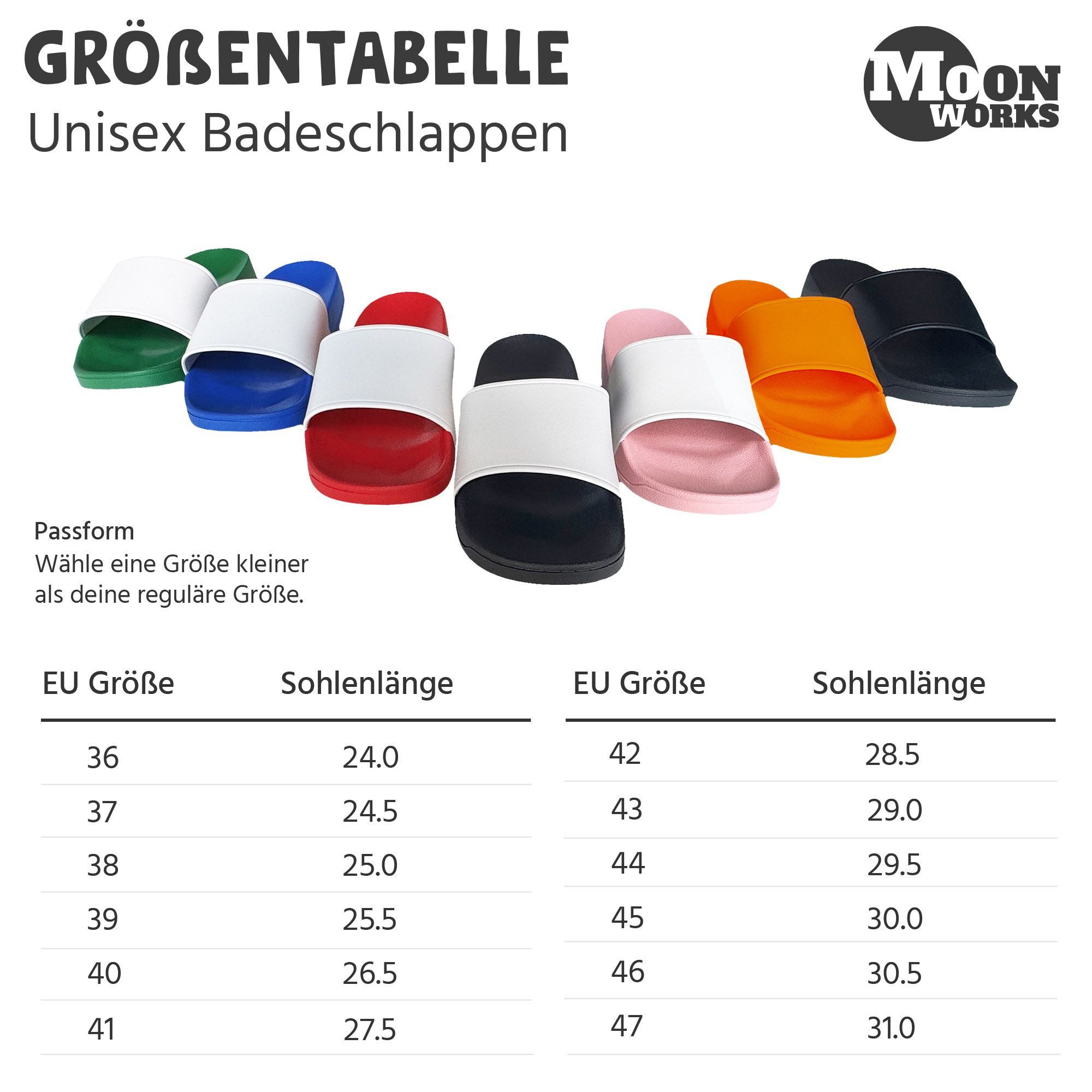 Bereit für den nächsten Trip? Diese witzigen MoonWorks Badeschlappen mit dem Spruch 'Kann losgehen' sind deine perfekten Begleiter! Hergestellt aus 100% PVC sind sie leicht, weich und super bequem. Die rutschhemmende Sohle gibt dir sicheren Halt am Pool, in der Sauna oder auf nassen Fliesen. Das ergonomisch geformte Fußbett sorgt für optimalen Komfort selbst bei längerem Tragen. Erhältlich in verschiedenen Farben wie Schwarz, Blau, Rosa oder Grün - für jeden Geschmack was dabei! Perfekt für den Urlaub, Festivals, Junggesellenabschiede oder einfach für zu Hause. Als Geschenk sind sie ein absoluter Hit - ob zu Weihnachten, Geburtstag oder als Mitbringsel. Mit ca. 500g Gewicht sind sie leicht zu transportieren und immer griffbereit. Zeig deine Reiselust und Vorfreude mit diesen coolen Latschen - denn bei dir kann's immer losgehen!