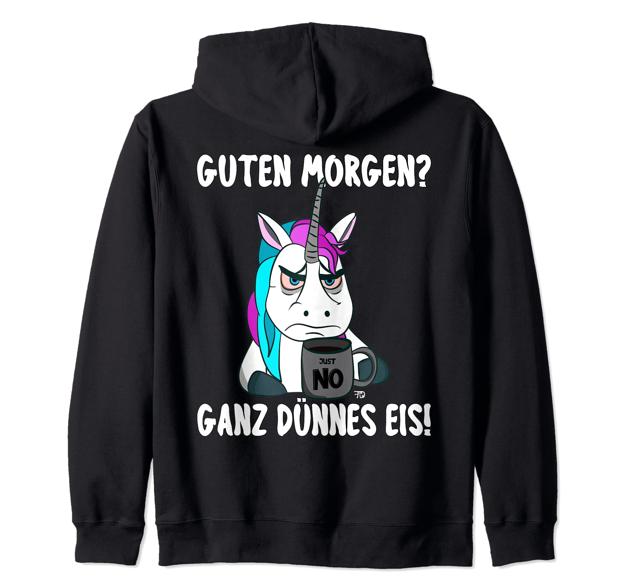 Für alle, die morgens genauso wenig können wie dieses süße Einhorn! Diese lustige Kapuzenjacke mit dem Spruch 'Ganz dünnes Eis' und dem mürrischen Einhorn mit Kaffeetasse ist der absolute Hingucker. Perfekt für Nicht-Morgenmenschen, Langschläfer und alle, die ohne Kaffee nicht in die Gänge kommen. Das Design ist total originell und macht jeden Tag ein bisschen besser. Mit 241 Gramm Gewicht ist die Jacke schön leicht und der klassische Schnitt sitzt einfach perfekt. Der verstärkte Nacken sorgt für zusätzlichen Komfort. Ein super Geschenk für Krankenschwestern, Verkäufer, Lehrer oder einfach deine beste Freundin - alle werden sich über diesen witzigen Spruch freuen! Zeig der Welt, dass du ohne Kaffee nicht zu gebrauchen bist - aber mit Stil!