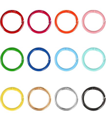 Total praktisch und vielseitig einsetzbar! Diese 50 Mini-Karabiner im Feder-O-Ring Design sind echte Allrounder für den täglichen Gebrauch. Mit 24mm Außendurchmesser sind sie handlich aber dennoch gut greifbar. Das Paket enthält 10 verschiedene Farben (gelb, blau, grün, orange, rot, weiß, rosa, schwarz, lila, braun) - perfekt zum Sortieren und Organisieren. Die Federclip-Funktion macht das Öffnen und Schließen super einfach, dabei halten sie sicher was sie halten sollen. Hergestellt aus hochwertiger Zinklegierung, rostfrei und langlebig ohne Verblassen. Ideal für Schlüsselbunde, Taschen, Rucksäcke oder kreative DIY-Projekte. Ob im Büro, Schule, Zuhause oder unterwegs - diese kleinen Helferlein sind immer nützlich. Du kannst sie an Taschengriffen befestigen, als Schlüsselanhänger nutzen oder in Bastelprojekten verwenden. Die runde Form ist angenehm in der Hand und verfängt sich nirgends. Einfach unverzichtbar für alle, die Ordnung lieben oder gerne basteln! Die Qualität überzeugt - glatte Oberfläche, keine scharfen Kanten, federleichte Bedienung.