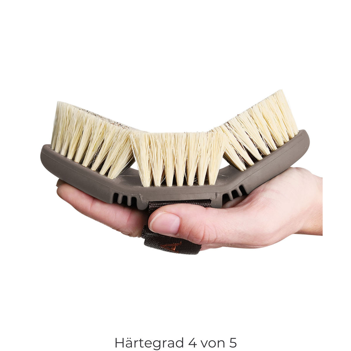 Perfekt für die gründliche Pferdepflege! Diese Wurzelkardätsche mit langen, festen Borsten entfernt selbst hartnäckigen Schmutz und Matsch! Die Borsten sind flexibel aber stabil - schonend aber effektiv! Ergonomische Form - liegt perfekt in der Hand und schont die Gelenke! Bis zu 90° biegbar - du kommst an jede Körperstelle! Mit verstellbarer Handschlaufe mit Klettverschluss - passt sich jeder Hand an! In Cappuccino-Mokka-Beige - sieht auch noch gut aus! Ein absolutes Muss im Putzzeug jedes Pferdefreundes! Damit wird dein Pferd blitzblank und glänzt vor Sauberkeit! Einfach bürsten und sich über das glänzende Fell freuen!