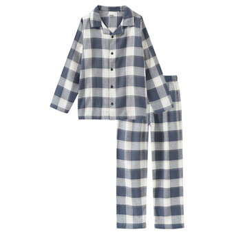 ThePyjamaFactory Jungen Schlafanzug Blau Kariert - Langarm Pyjama Set Mit Elastischem Bund