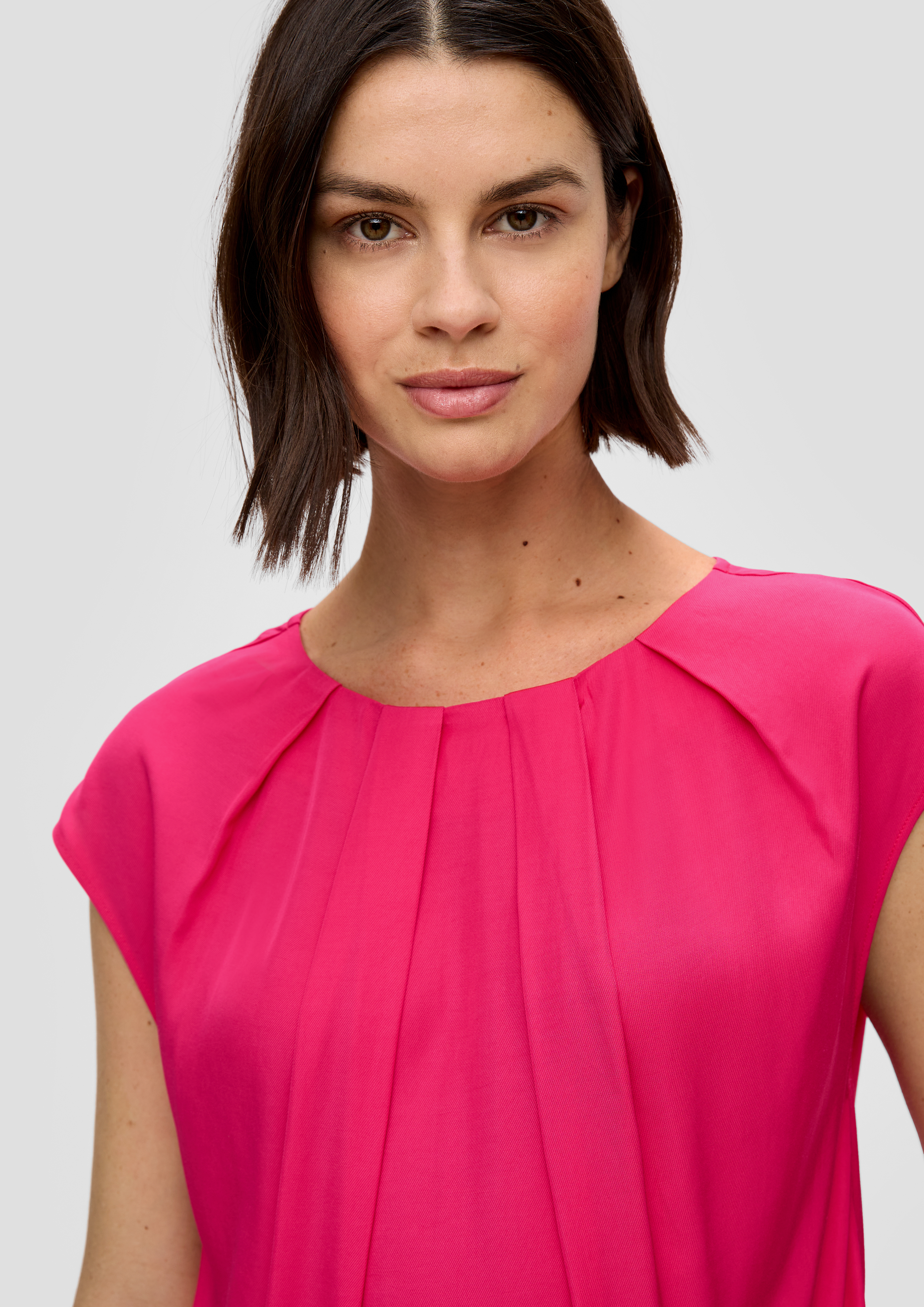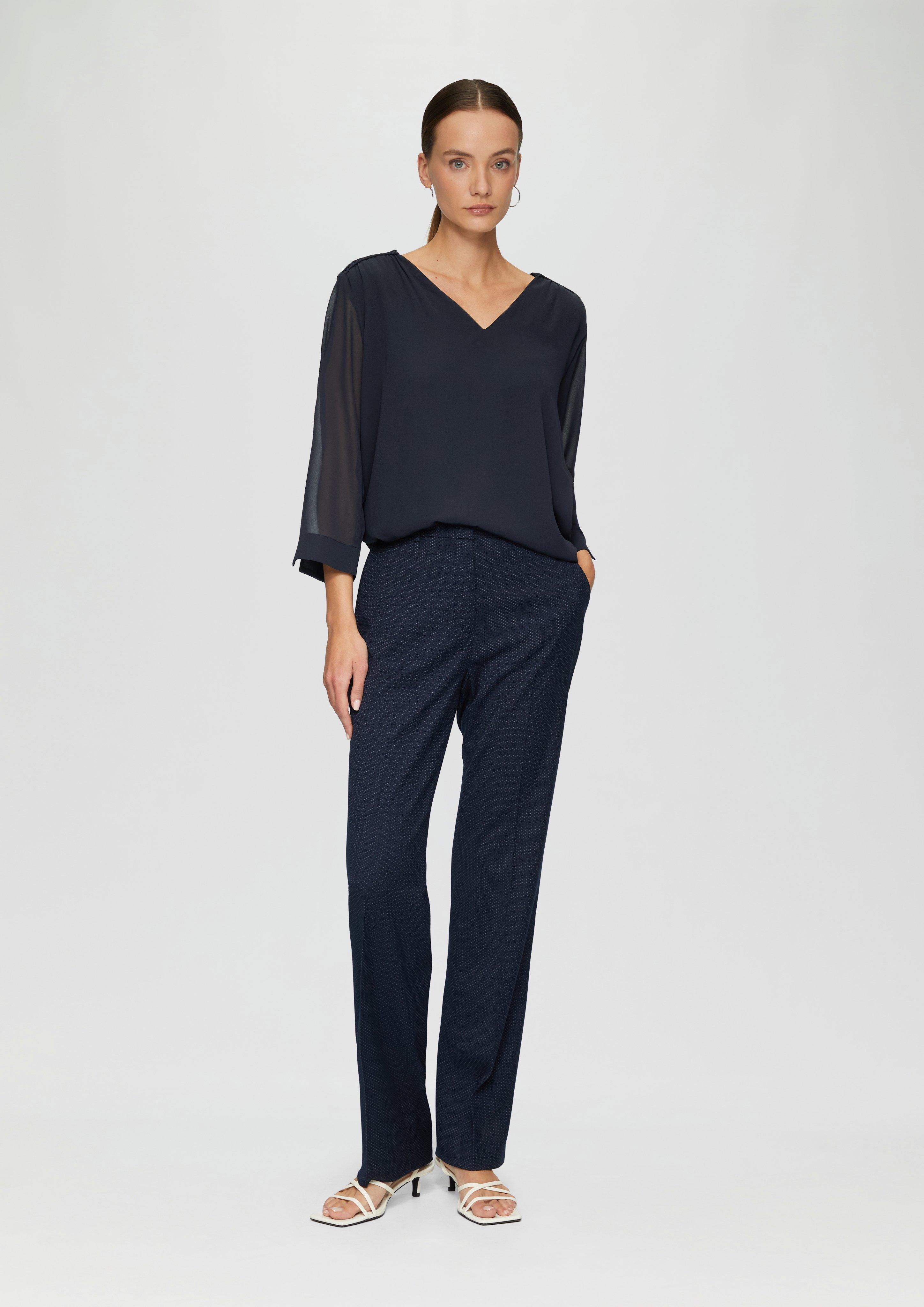 S.Oliver Karo-Bluse Navy Gr. 48 - Mit Faltendetail & Elastischen Ärmelbündchen