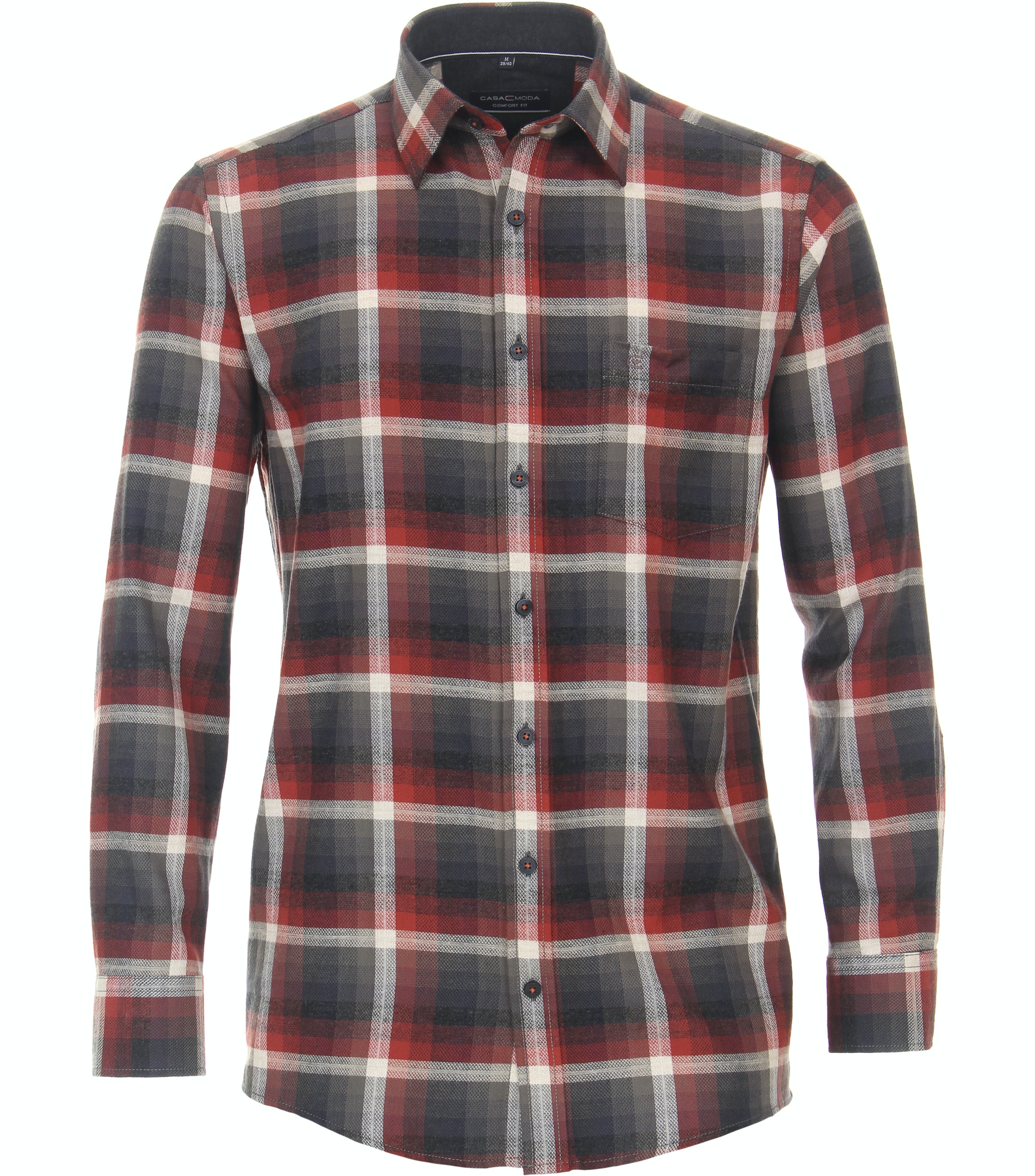Perfekt lässig für den Alltag! Dieses CASAMODA Hemd in Comfort-Fit sitzt einfach super bequem. Aus weicher Baumwolle mit dezentem Karomuster - stylevoll ohne aufdringlich zu sein. Der Kent-Kragen und die Brusttasche geben dem Hemd den letzten Schliff. Perfekt zu Jeans oder Chino, ob in der Freizeit oder im Büro (wenn's locker sein darf). Einfach anziehen und gut aussehen - mehr braucht's nicht. Das ideale Hemd für alle, die Wert auf Komfort und Style legen. Dein neuer Liebling im Schrank!