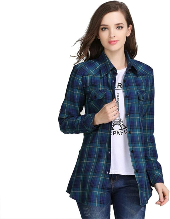 OUSIMEN Damen Karohemd Langarm - Baumwollhemd Mit Knopfleiste Für Casual Style