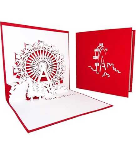 Wow-Effekt garantiert! Diese wunderschöne 3D Pop-Up Karte mit dem Wiener Riesenrad ist ein absolutes Highlight. Sobald du die Karte öffnest, entfaltet sich wie von Zauberhand das filigrane Riesenrad aus Papier. Im 15x15cm Format und in blau gehalten, ist sie perfekt als Souvenir aus Wien, als Reisegutschein oder einfach als besondere Grußkarte. Handgefertigt unter fairen Bedingungen in Vietnam, ist jede Karte ein Unikat. Der beiliegende Versandumschlag in Schutzhülle macht sie zum perfekten Geschenk. Ob zur Einladung für einen Städtetrip, als Geburtstagsüberraschung oder einfach als Gruß aus Österreich - diese Karte begeistert jeden Empfänger. Nachhaltig produziert mit zertifizierten Papiersorten. Einfach aufklappen und staunen!