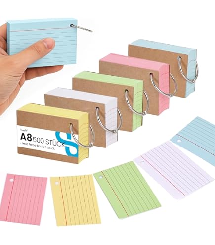 Perfekt organisiert lernen! Dieses Sparpaket mit 400 Karteikarten in DIN A7 bietet dir genug Material für Schule, Studium oder Beruf. Erhältlich in 6 fröhlichen Farben: weiß, blau, rosa, gelb, grün und orange - ideal zum Sortieren nach Themen. Die Karten sind liniert mit blauer Dual-Lineatur und haben ein Papiergewicht von 170 g/m². Säurefrei und tintenfest - also perfekt für Füllfederhalter geeignet. Super für Vokabeln, Formeln, Definitionen oder To-Do-Listen. Kommt im praktischen Beutel verpackt. Ob für Schüler, Studenten oder zur Büroorganisation - mit diesen Karteikarten behältst du den Überblick. Mach das Lernen bunter und effektiver!
