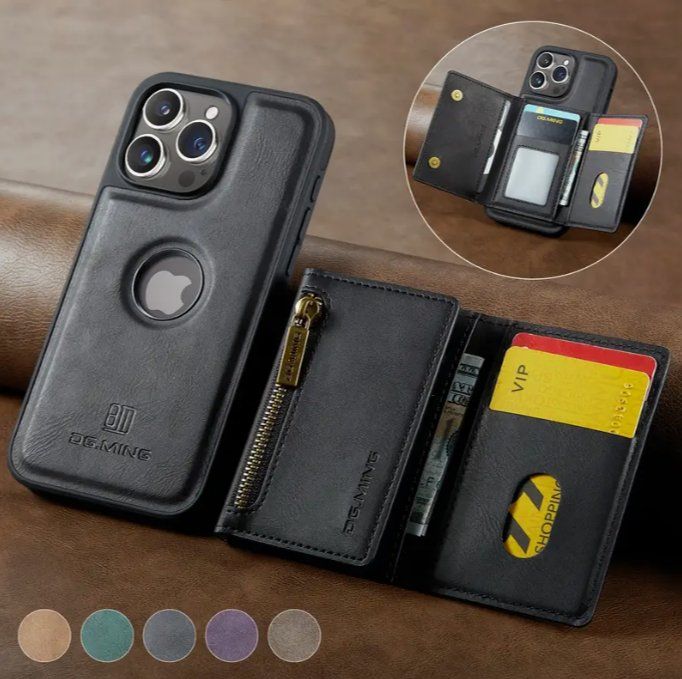 Schluss mit sperrigen Geldbörsen und separaten Handyhüllen! Die LLZ.COQUE Magnetic Handyhülle kombiniert beides in einem stylischen Design. Kompatibel mit iPhone 15, 14, 13 und 12 Serie, bietet sie nicht nur Schutz für dein Smartphone, sondern hat auch Platz für deine wichtigsten Karten.\n\nDer starke Magnetring hält sicher auf deinem Phone - egal ob nackt oder mit magnetischer Hülle. Der integrierte Ständer ist superpraktisch: verstellbar von 15° bis 160°, perfekt für Videoanrufe, Filmschauen oder entspanntes Surfen. Das elegante Kohlefaser-Muster sieht nicht nur gut aus, sondern ist auch griffig und langlebig.\n\nDu kannst mehrere Karten sicher in den Fächern unterbringen - Bankkarten, Kreditkarten, alles dabei. Das klappbare Design sorgt dafür, dass nichts verloren geht. Und ja, kabelloses Laden ist damit auch möglich! Alles in allem: eine durchdachte, vielseitige Hülle, die dein Leben einfacher macht.