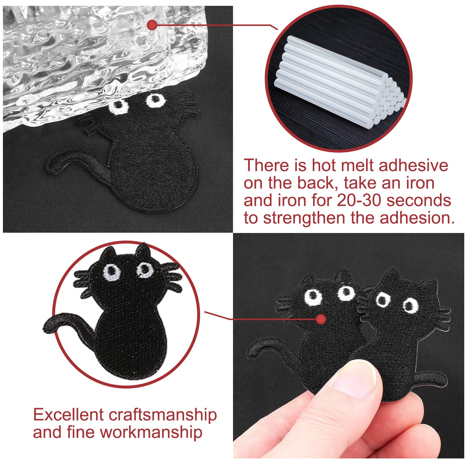 10x Stickerei Aufnäher Schwarze Katze | Bügelpatches Für Jeans & Jacken | Polyester DIY Textilien