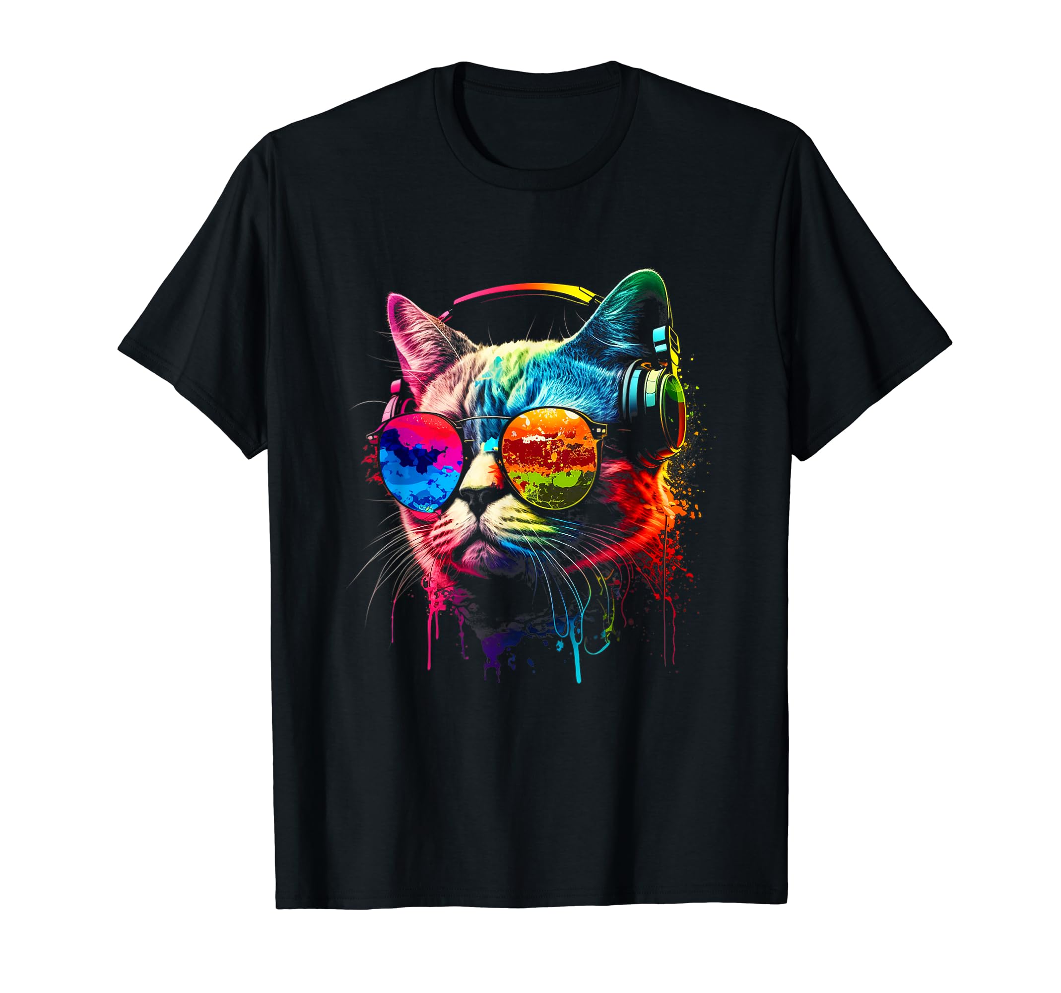 DJ Katze T-Shirt - Lustiges Kitty Design Mit Sonnenbrille