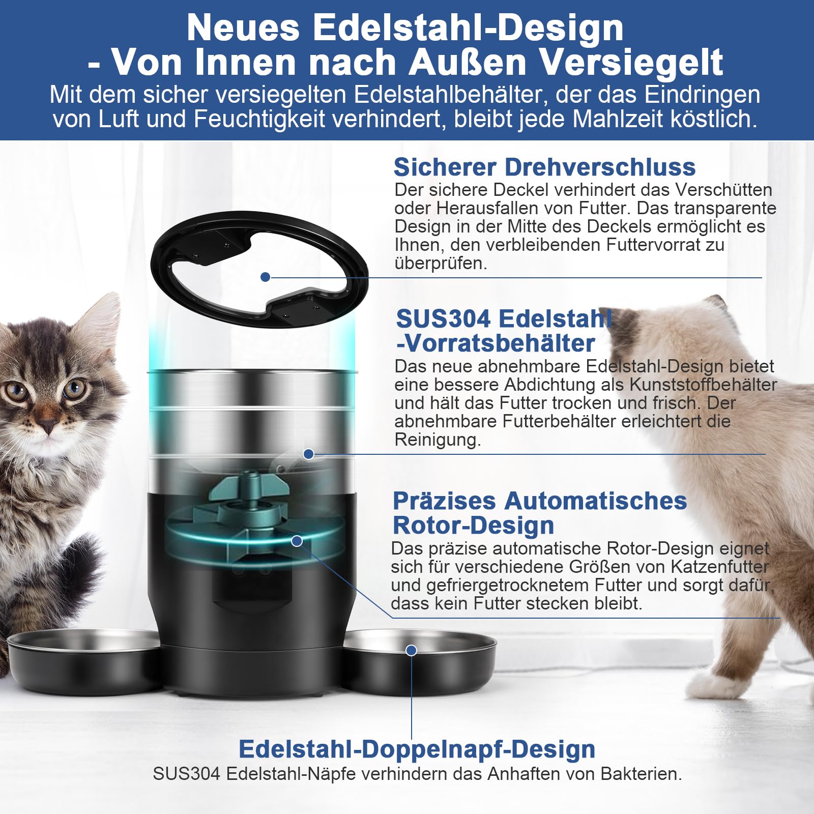AONBOY Futterautomat Für 2 Katzen - 5L WiFi Futterspender Mit App Steuerung