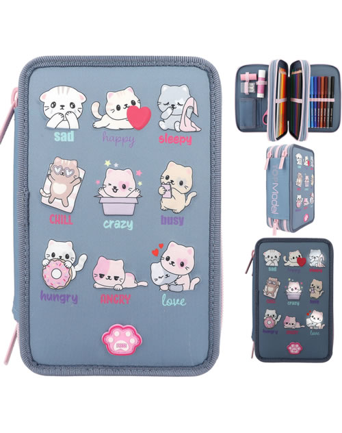 Derform Katzen Federmappe 3-Fach - Gefüllt Mit 43 Teilen