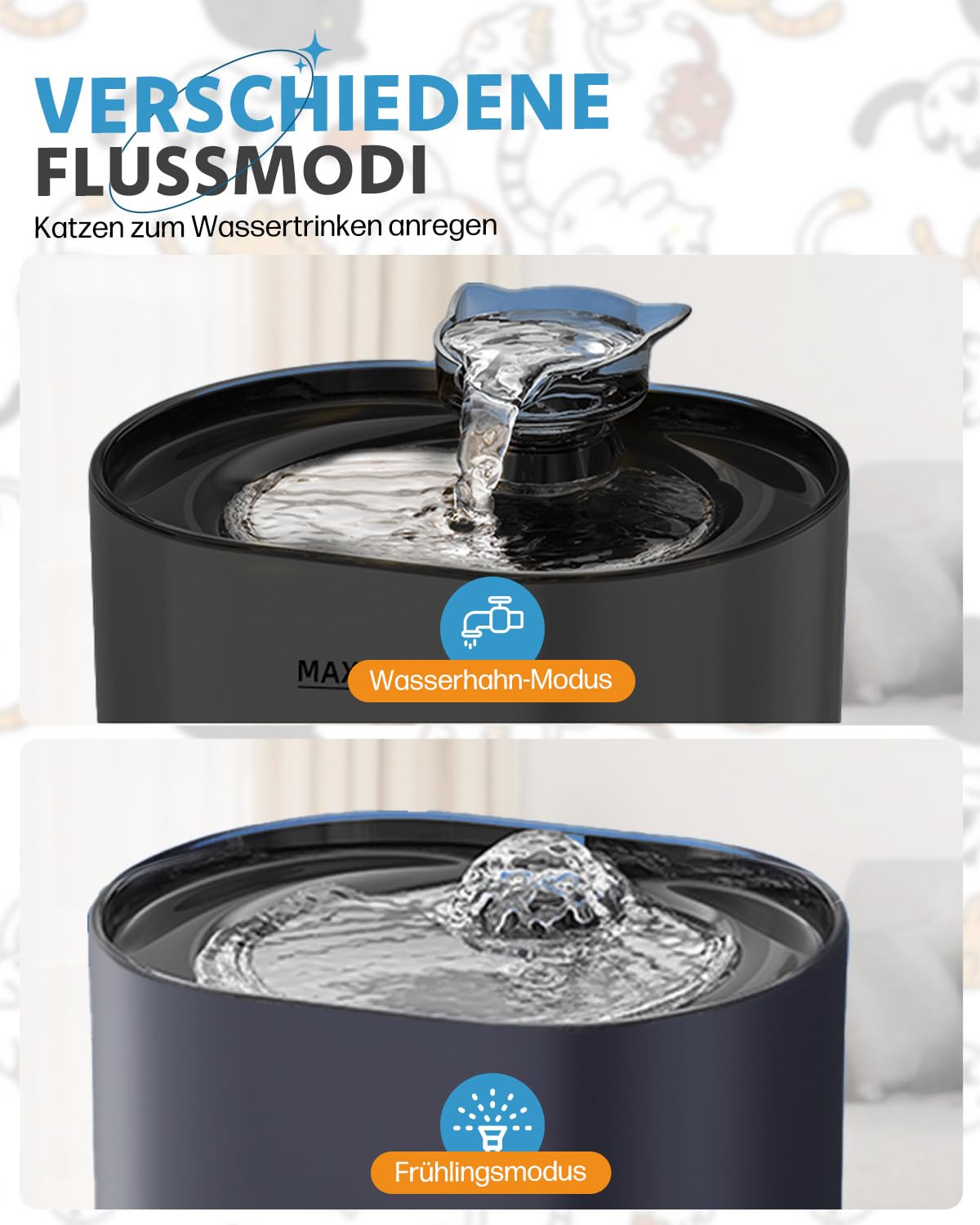 Das coole Feature: Zwei Wasser-Modi! Entweder der sanfte Quellwasser-Stil oder der dynamische Wasserfluss - je nachdem, was deine Katze lieber mag. Die superleise Pumpe stört nicht mal beim Fernsehabend.