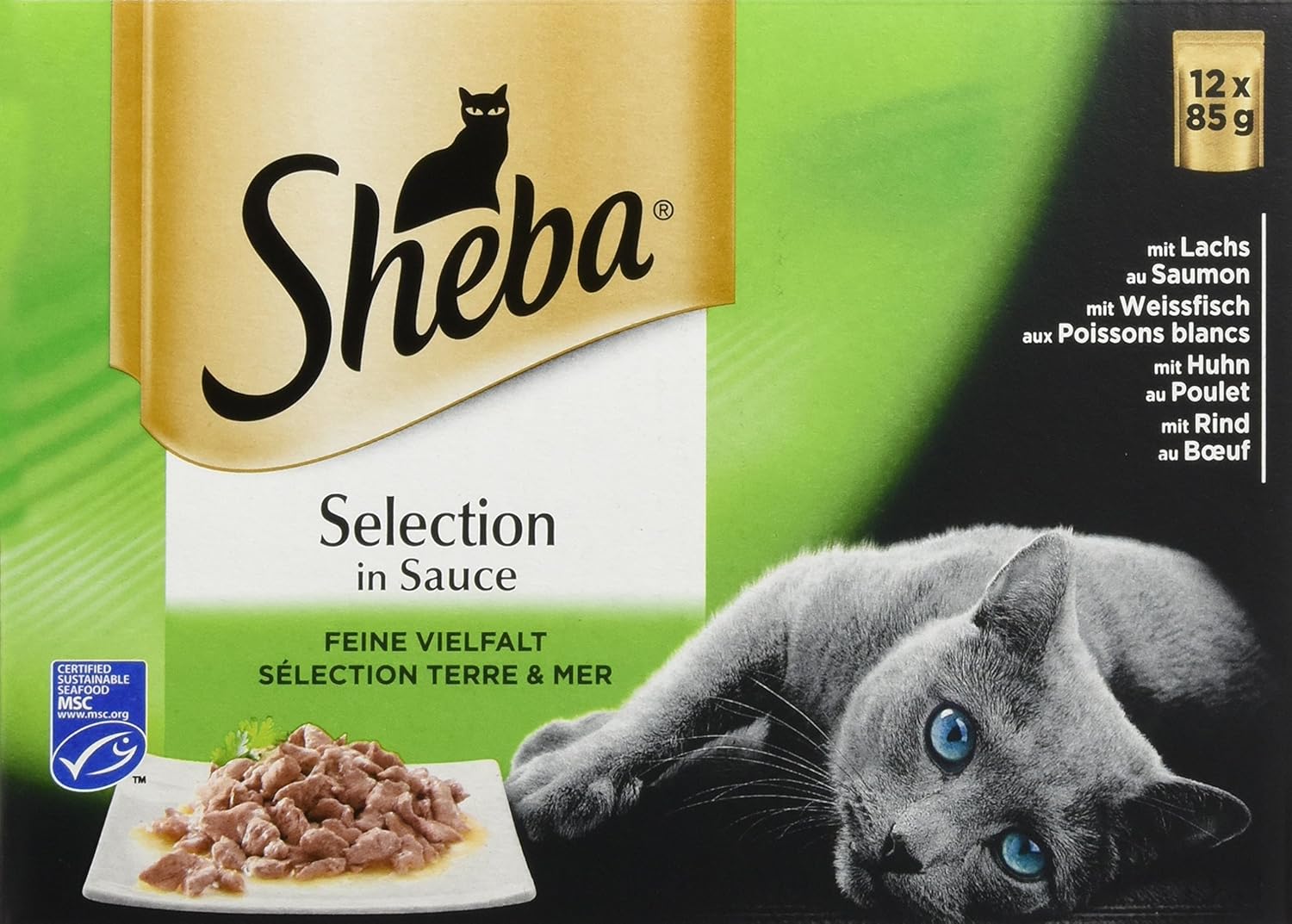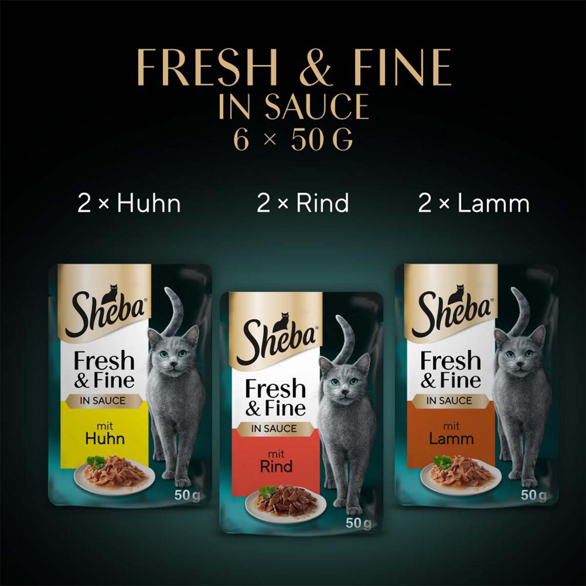 SHEBA Fresh & Fine Katzenfutter 12x50g - Sortenbox Mit Rind, Huhn & Lamm In Sauce