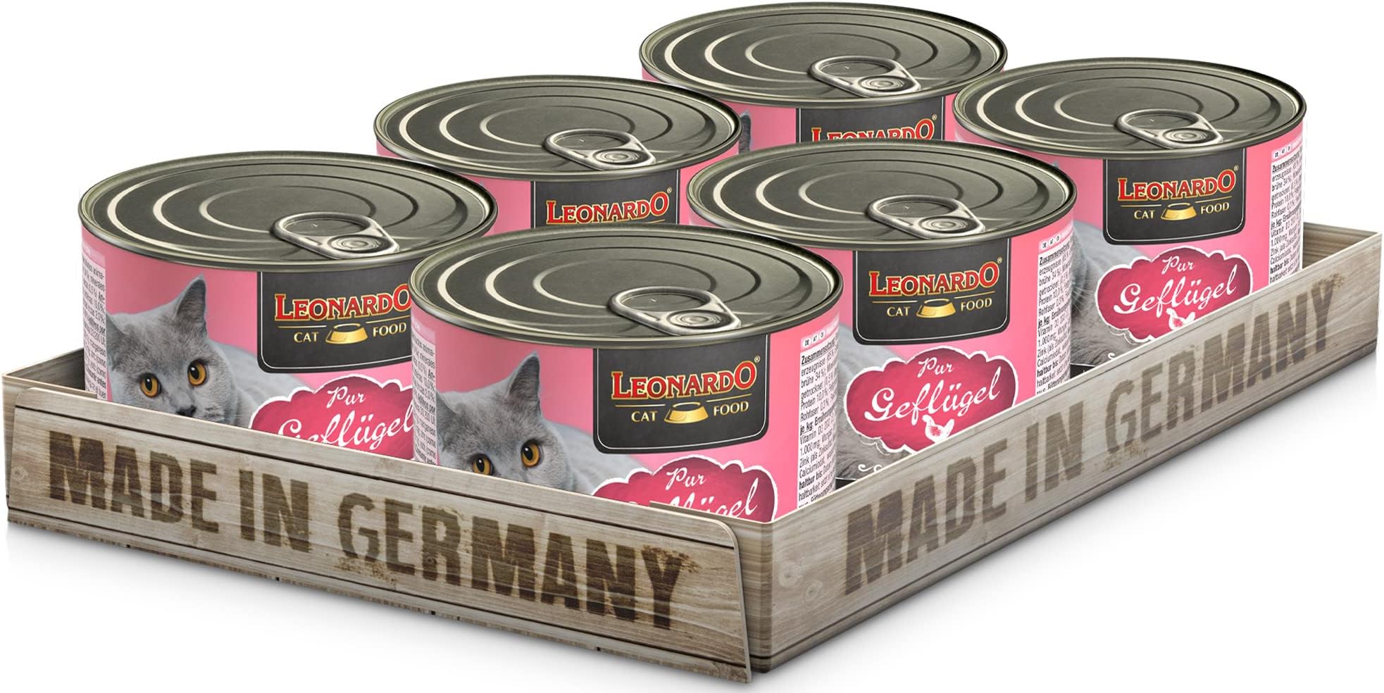 Feinstes Katzenmenü made in Germany! LEONARDO Superior Selection mit Pferd und Zucchini ist Premium-Futter für anspruchsvolle Samtpfoten. 66% Pferdefleisch mit Innereien - hochwertige Proteine die deine Katze braucht. Dazu 4% Zucchini für extra Geschmack und Vitamine. Komplett getreidefrei und ohne Zucker - ideal für sensible Katzenmägen. Mit Lachsöl für glänzendes Fell und gesunde Haut. Katzenminze macht's noch unwiderstehlicher für wählerische Fresser. Keine künstlichen Farbstoffe, Geschmacksverstärker oder Konservierungsmittel. Fütterungsempfehlung: 200-400g täglich für ausgewachsene Katzen (3-5kg). Bitte zimmerwarm servieren und immer frisches Wasser bereitstellen. Nach dem Öffnen innerhalb von 24 Stunden verfüttern. 6 Dosen à 200g - Vorrat für mehrere Tage. Deine Katze wird's lieben und dir dankbar sein!