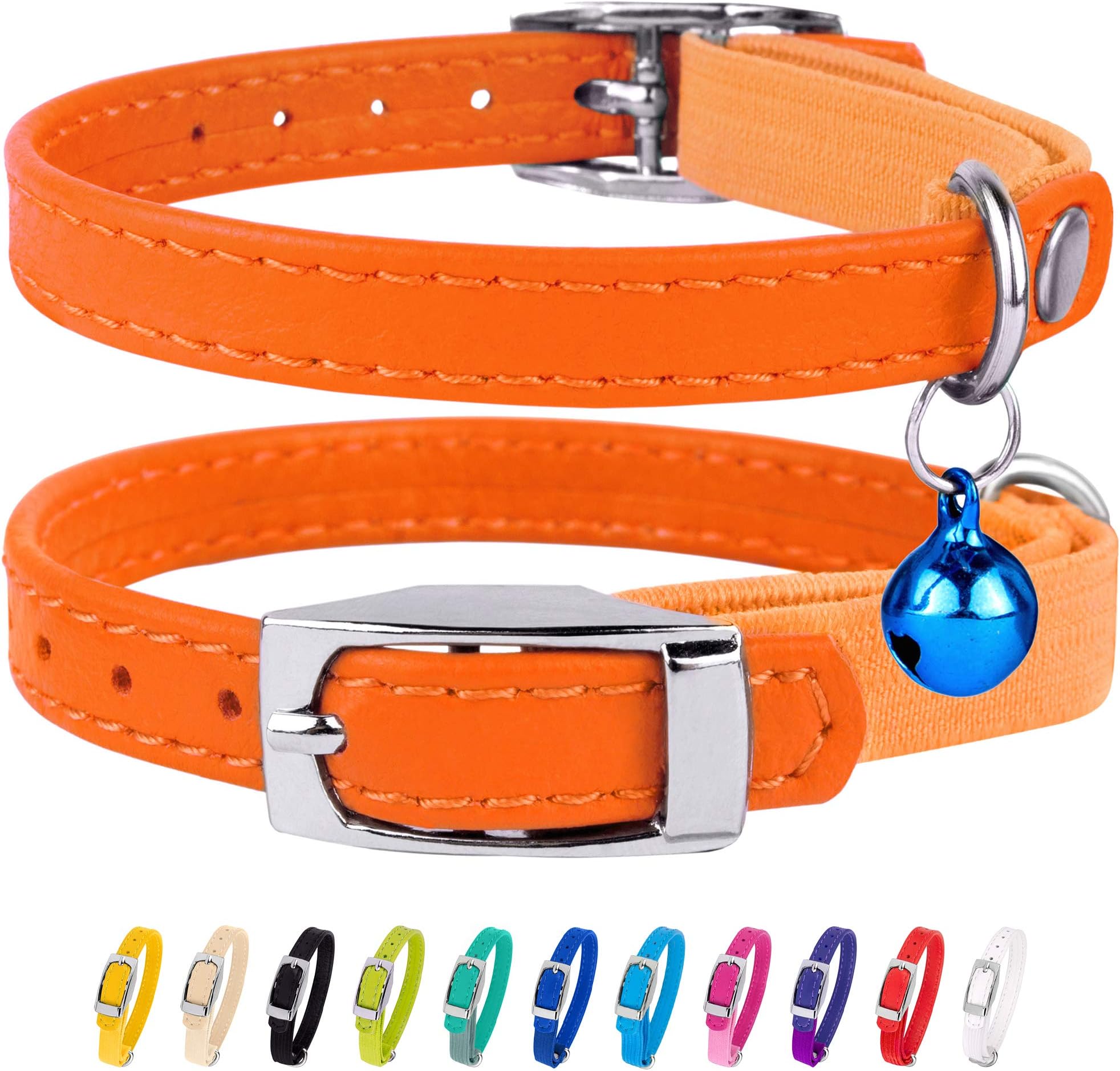 DILLYBUD Leder Katzenhalsband Mit Glocke - Sicherheits-Halsband Lila 18-23cm