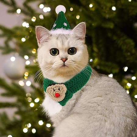 Oh wie süß! Dieser gestrickte Katzenschal von Kybelehoo bringt Weihnachtsstimmung in dein Zuhause. Mit der grünen Glocke und den weihnachtlichen Mustern in Rot und Grün sieht deine Katze aus wie das Christkind persönlich! Aus weichem, hautfreundlichem Baumwollmaterial - kratzt nicht und ist super angenehm für deine Samtpfote. Für Katzen mit Halsumfang 30-35cm und Gewicht 4,5-7,5kg perfekt geeignet. Verstellbar, damit es nicht zu eng sitzt aber auch nicht runterfällt. Einfach umlegen und zuknöpfen - selbst wenn deine Katze nicht so begeistert ist von Kleidung, geht das ratzfatz. Perfekt für Weihnachtsfotos oder um Besuch zu beeindrucken! Macht deine Katze zum Star unter dem Christbaum. Und das Beste: Lässt sich easy reinigen und verblasst nicht. Ob für langhaarige oder kurzhaarige Katzen - alle sehen damit niedlich aus. Ein super Geschenk für andere Katzenbesitzer oder einfach für dich selbst, um die Feiertage besonders zu machen. Deine Katze wird vielleicht nicht verstehen warum, aber du wirst jedes Mal schmunzeln wenn du sie damit siehst! Weihnachten mit Katze war noch nie so niedlich!