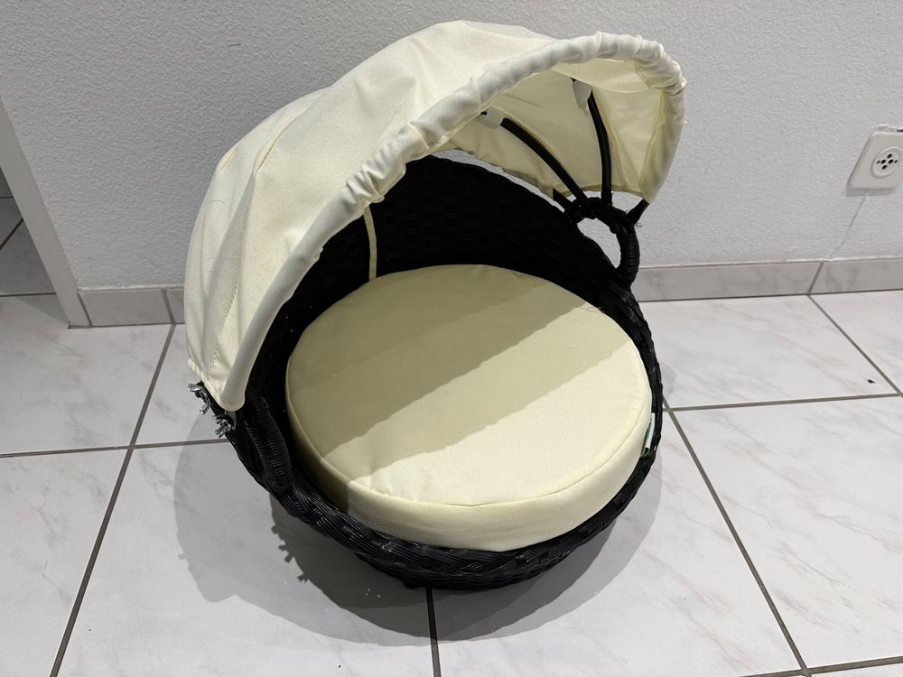 Dieser gewebte Katzenkorb ist mehr als nur ein Schlafplatz! Mit integrierter Kratzmatte und Garnball - Spielspaß inklusive!