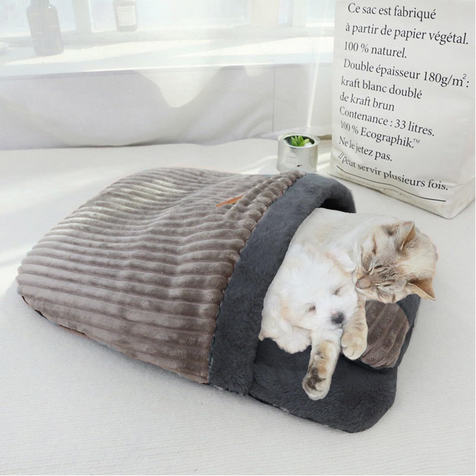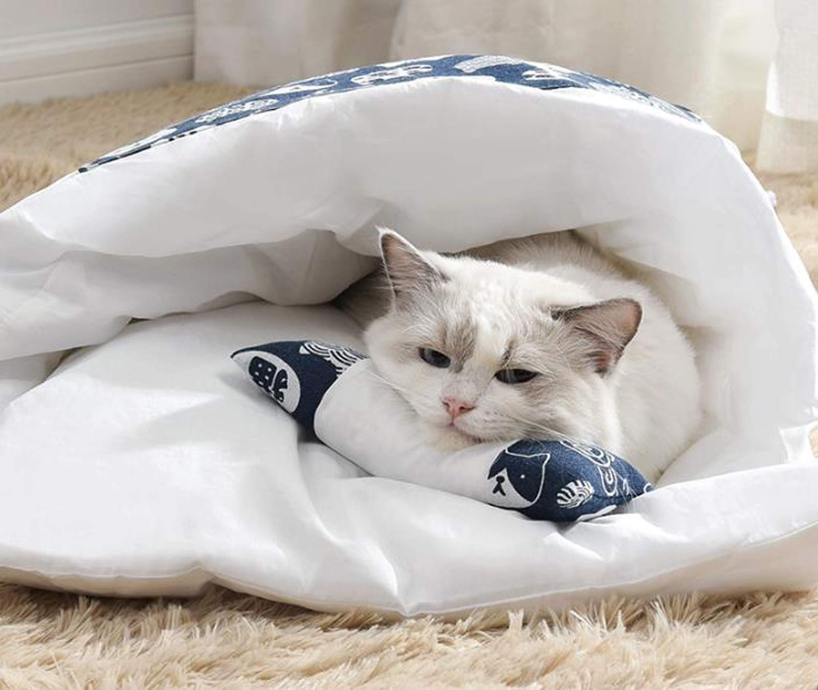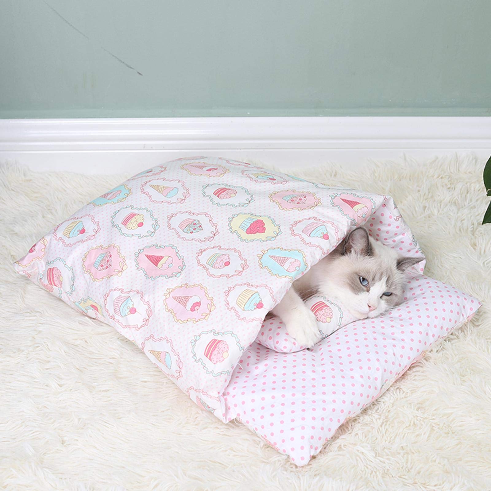 Katzenschlafsack 65x50 Cm - Warmes Katzenbett Mit Kissen