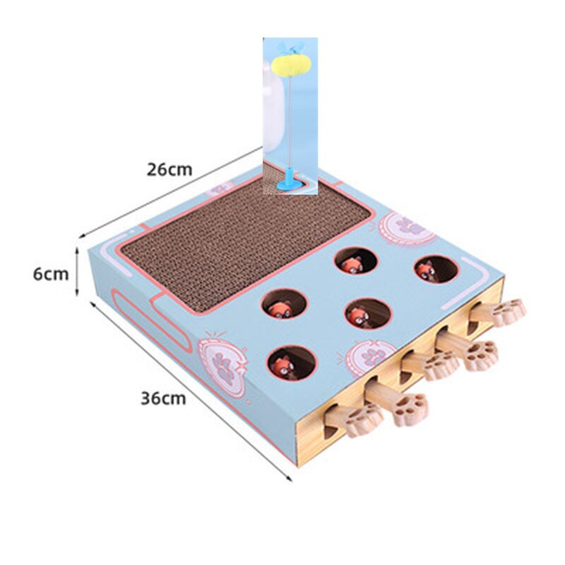 Beschäftigung für deine neugierige Katze! Dieses geniale Puzzle-Spielzeug mit niedlichen Comic-Mäusen weckt den Jagtinstinkt deiner Katze. In zwei Größen erhältlich: 3-Loch (17,5x24x10cm) oder 5-Loch (17,5x35,5x10cm) Version. Deine Katze muss die Hebel drücken, um die Mäuse zu erwischen - das fördert Intelligenz und Beweglichkeit. Aus ungiftigem Holz gefertigt, mit glatten Oberflächen, sicher für dein Tier. Perfekt gegen Langeweile und für mehr Bewegung. Wenn du mal keine Zeit hast, beschäftigt sich deine Katze selbstständig damit. Reduziert Stress und beugt Depressionen vor. Die kleinen Mäuse lassen sich leicht wieder in die Box stecken für wiederholten Spielspaß. Einfach auf den Boden stellen und deine Katze wird es sofort erkunden. Ideal für Wohnungskatzen oder als Abwechslung zum normalen Spiel. Macht das Training spannend und fördert die Mensch-Tier-Beziehung. Deine Katze wird dieses Spielzeug lieben! Ein tolles Geschenk für alle Katzenliebhaber.