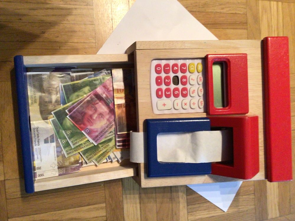Oh, was für eine süße Spielzeug-Kasse! Perfekt für kleine Verkäufer und Verkäuferinnen ab 2-5 Jahren. Aus nachhaltigem Holz gemacht, handgeschliffen damit keine scharfen Kanten sind - total sicher für Kinderhände.\n\nIm Set ist alles dabei was man braucht: Kasse mit Dualmodus-Rechner (Mathe oder Klavier-Geräusche), Kartenlesegerät mit Licht und Sound, Spielgeld, Kreditkarten, Einkaufslisten und ein Notizbuch. \n\nDie Kinder lernen spielerisch Mathe beim Bezahlen und Wechselgeld geben. Der Scanner piept und leuchtet wie im echten Supermarkt - das lieben die Kleinen! MINT-Lernen (Mathe, Informatik, Naturwissenschaften, Technik) beim Wiegen und Kassieren.\n\nSuper für Eltern-Kind-Spiele: Du gibst die Einkaufsliste, das Kind scannt die 'Waren' und kassiert. So lernen sie spielerisch den Umgang mit Geld und verbessern ihre Kommunikation.\n\nPerfekt als Geburtstagsgeschenk, zu Weihnachten oder einfach so. Fördert die Fantasie und sozialen Fähigkeiten. Robust und langlebig - hält auch wildem Spielstand. \n\nEinfach aufbauen und losspielen. Dein Kind wird stundenlang Spaß haben mit seinem eigenen Supermarkt!