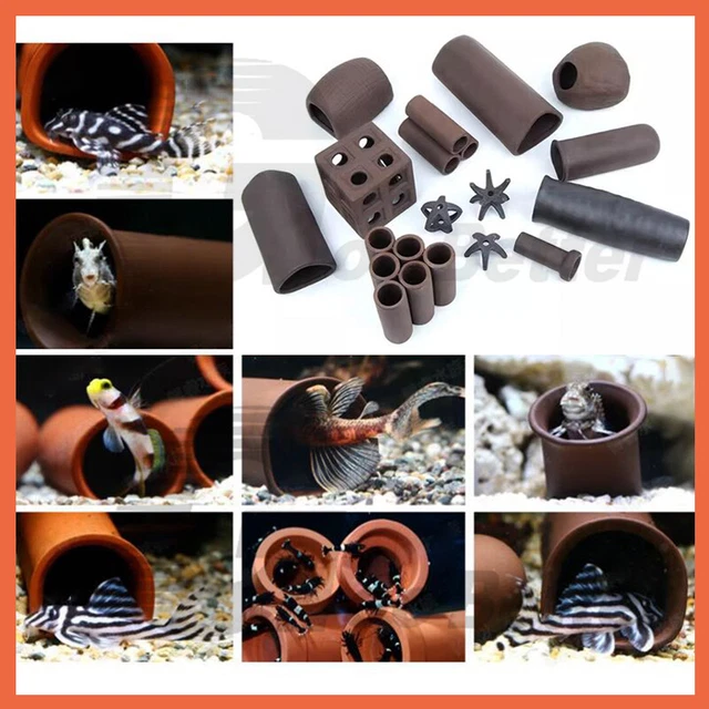 2 Keramik Aquarium Höhlen - Fisch Versteck Holzform
