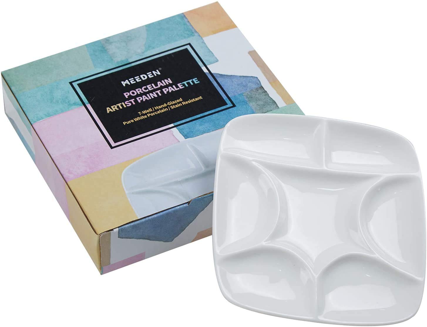 MEEDEN Keramik Künstlerpalette Mit 7 Mulden - Weiße Mischpalette Für Aquarell, Acryl & Ölfarbe - 14,7 Cm