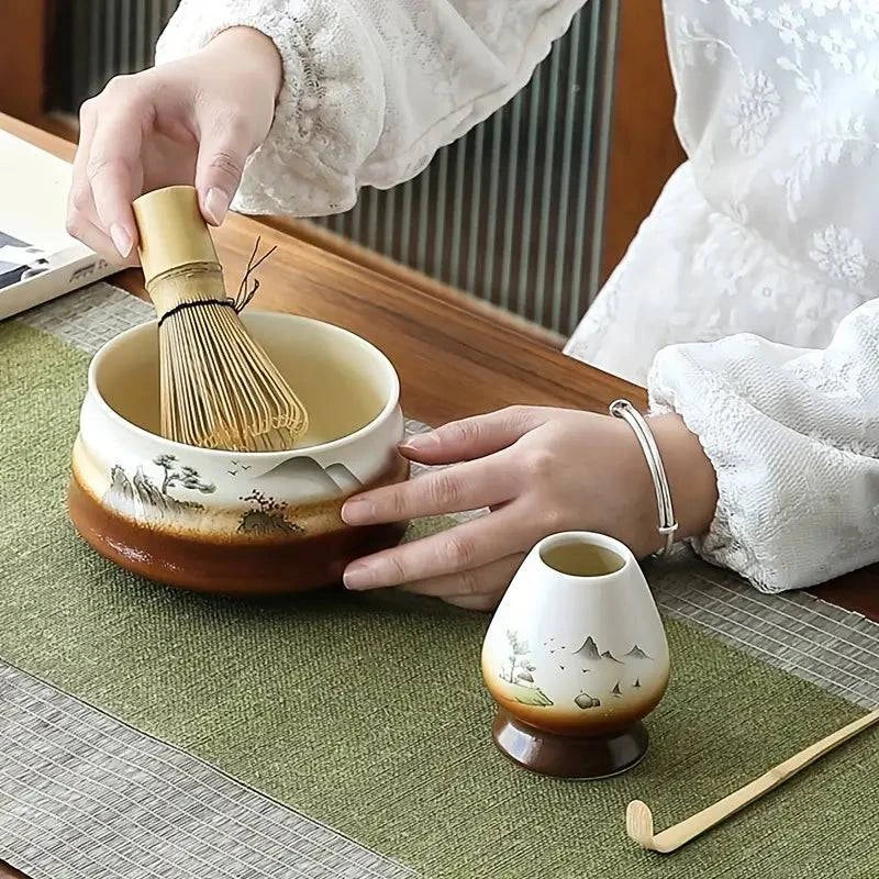 Druuzyl Matcha Set 5-teilig - Keramik Schale, Besen, Sieb & Ständer