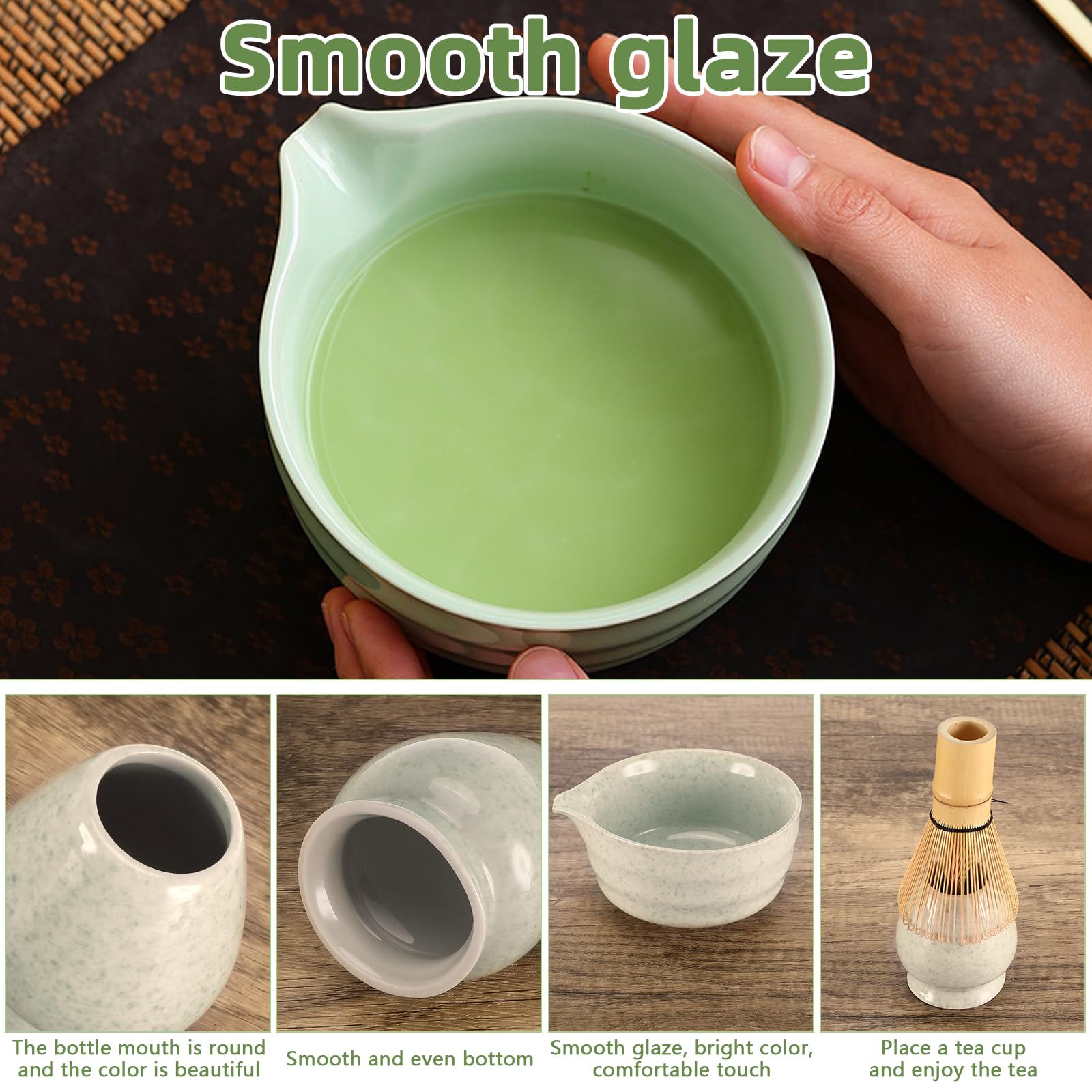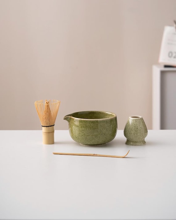 Matcha Set 4-teilig - Keramik Schale Mit Bambusbesen & Schaufel Für Teezeremonie