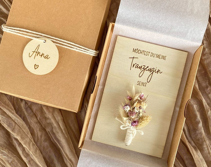 Trauzeugin Fragen Geschenkset - Kerze Mit Holzbox & Trockenblumen