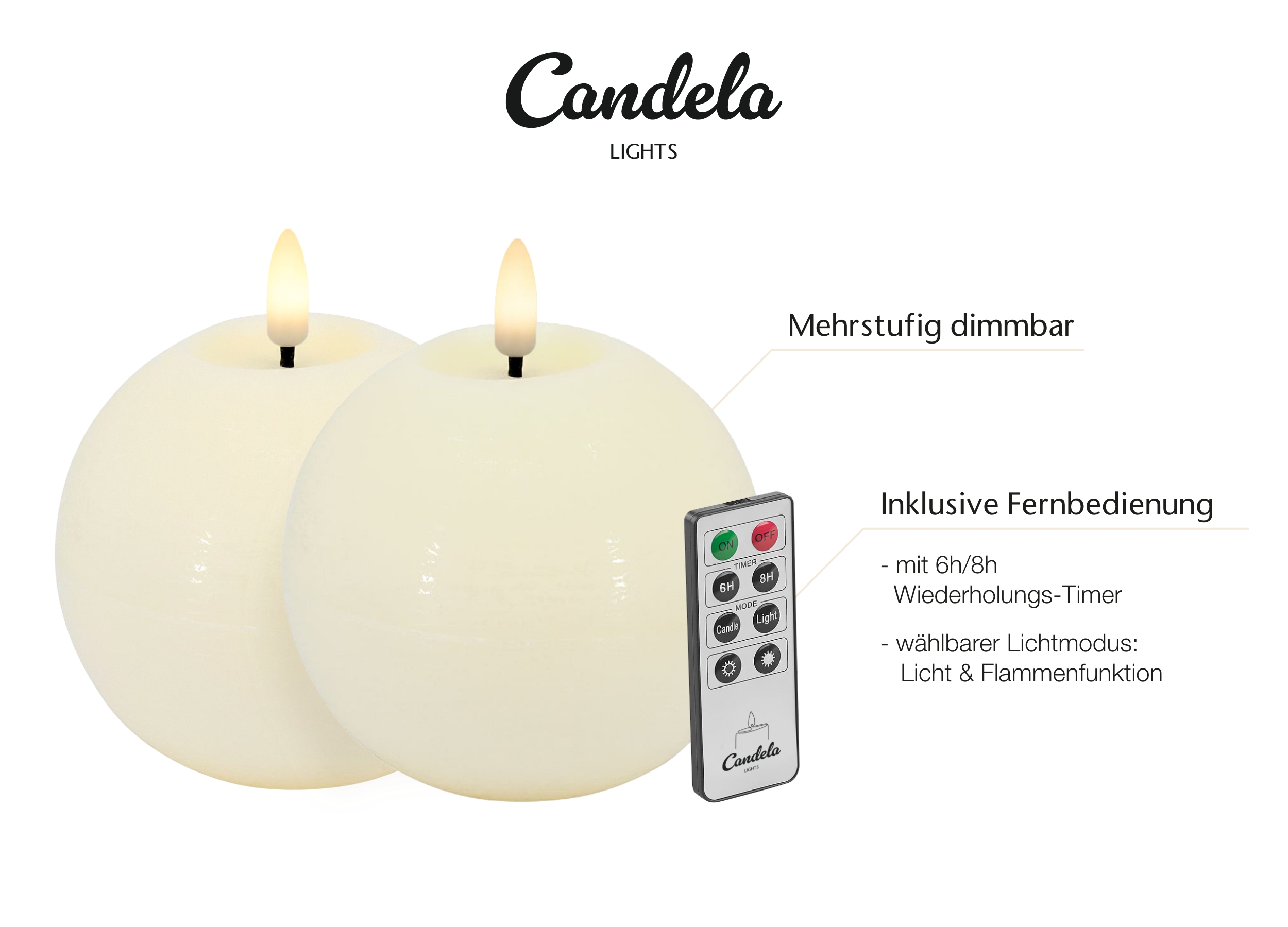 Candela Lights LED Kerzen 4er Set - Echtwachs Mit Fernbedienung & Flammenfunktion