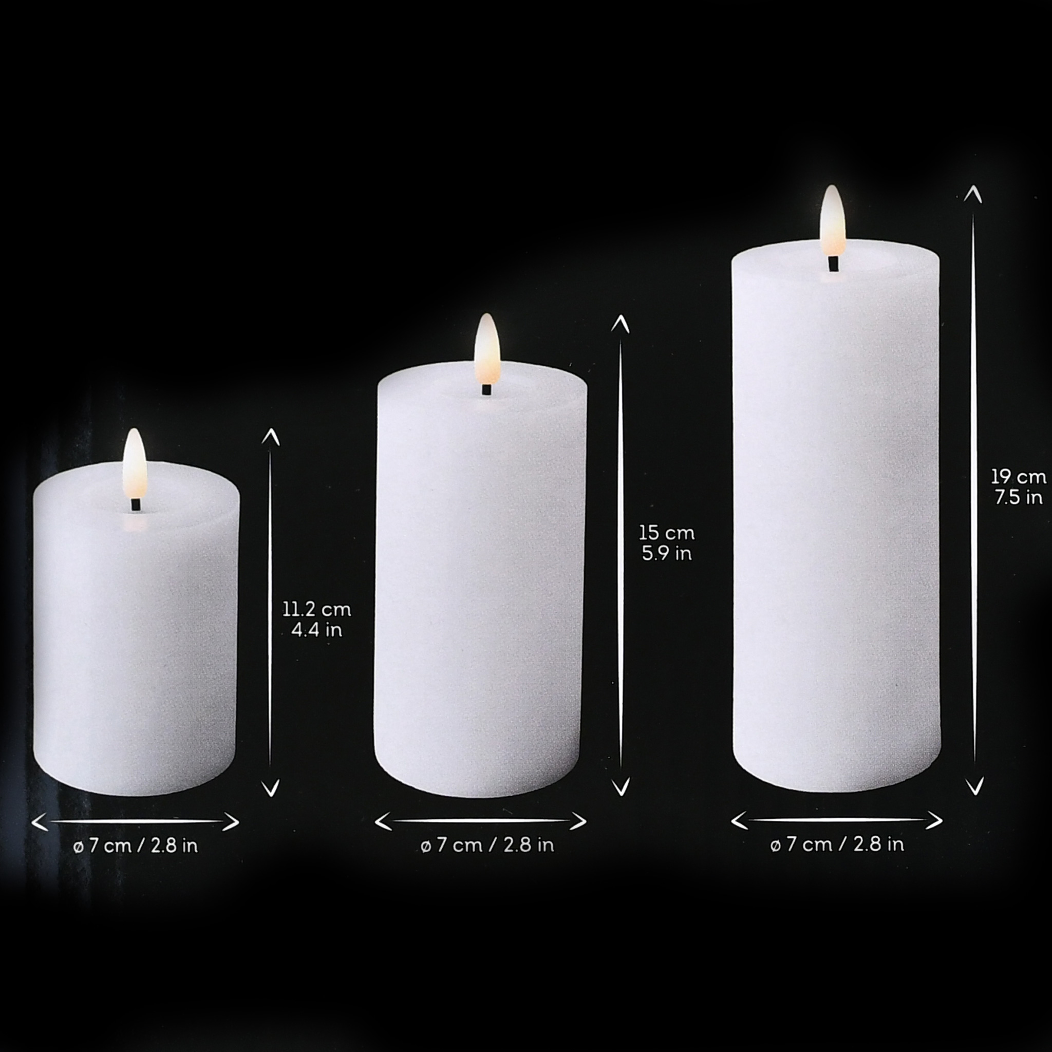 Schaffe gemütliche Atmosphäre ohne Brandgefahr! Diese LED Kerzen im Rustik-Design sehen echten Wachskerzen täuschend ähnlich. Das 3er Set in verschiedenen Höhen (11,2cm, 15cm, 19cm) aus echtem Wachs überzeugt mit warmweißem LED-Licht und natürlichem Flackereffekt. Besonders praktisch: Die 6-Stunden-Timer Funktion sorgt automatisch für stimmungsvolle Beleuchtung. Per Fernbedienung lassen sich die Kerzen bequem steuern - kein mühsames An- und Ausschalten mehr! Ideal für Familien mit Kindern oder Haustieren, da keine Brandgefahr durch offene Flammen besteht. Die Kerzen laufen mit AAA-Batterien (nicht im Lieferumfang) und bieten bis zu 180 Stunden Betriebszeit. Ob als Adventsdekoration, für die Hochzeitsfeier oder einfach für gemütliche Abende - diese Kerzen sind vielseitig einsetzbar und bringen jedes Zuhause zum Strahlen. Perfekt für Innenbereiche und made in Germany Qualität!
