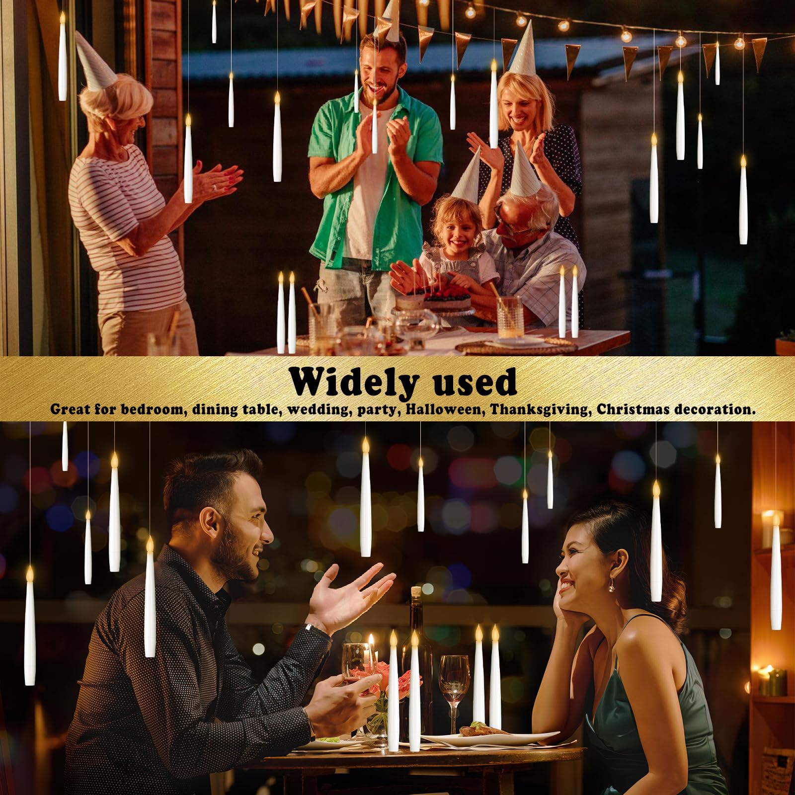 Romantische Stimmung ohne echte Flamme! Dieses Set mit 12 LED-Kerzen ist perfekt für gemütliche Abende und besondere Anlässe. Aus sicherem Kunststoff, aber sie sehen aus wie echte Kerzen - mit diesem tollen Heiligenschein-Effekt. Die Flamme wirkt super realistisch und sanft. Kein tropfendes Wachs, kein Rauch, keine Brandgefahr - ideal für Familien mit Kindern oder Haustieren! Einfach Batterien rein und schon leuchten sie. Perfekt für Valentinstag, Hochzeiten, Weihnachten, Halloween oder einfach fürs tägliche Ambiente im Wohnzimmer. Stell sie auf den Esstisch, ins Schlafzimmer oder ins Restaurant - überall sorgen sie für diese besondere Atmosphäre. Wiederverwendbar und praktisch. Ob als Kerzenlaternen oder einfach so aufgestellt - sie machen einfach was her. Du kannst sie auch gut mit anderen Dekoelementen kombinieren. Einfach einschalten und entspannen!