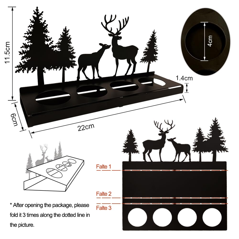 Oh, wie weihnachtlich! Dieser Adventskranz bringt Festtagsstimmung ins Haus! Aus Holz mit Metall-Elementen - hochwertige Verarbeitung! Für 4 Teelichter (Ø4cm) - gemütliches Licht! Mit Projektionsplatten - wirft Muster an die Wand! Maße: 25,8x12x8cm - perfekte Größe für jeden Tisch! Elch- und Tannenbaum-Motive - total niedlich! Macht jeden Raum sofort festlich! Auch super als Geschenk für Weihnachtsfans! Einfach Teelichter rein und den Zauber genießen! Damit wird die Vorweihnachtszeit unvergesslich!