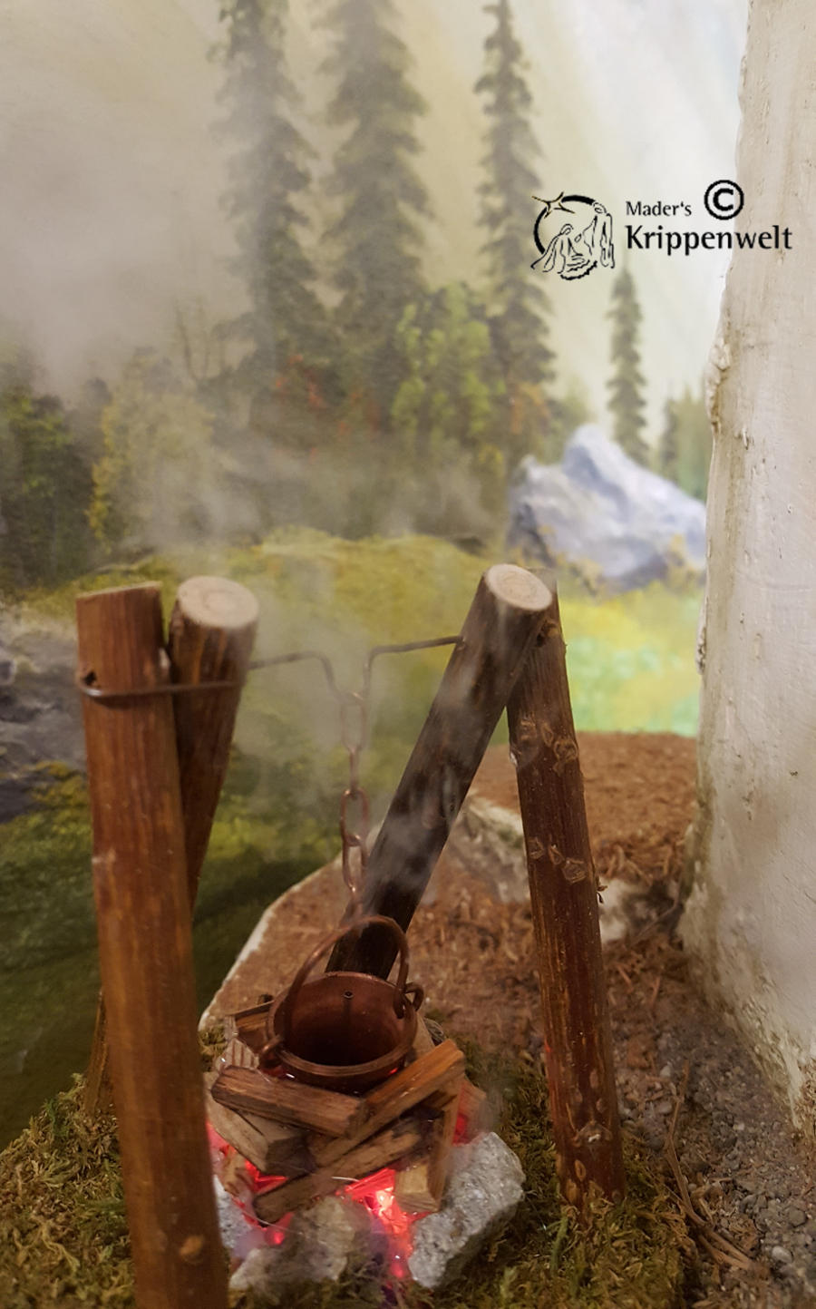 Riffelmacher Lagerfeuer Mit Kessel - 15cm Krippen-Zubehör Mit Beleuchtung