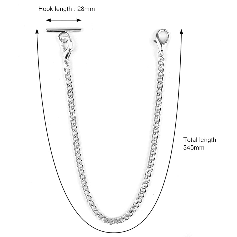 Diese Taschenuhr-Kette im Albert-Design ist voll im Vintage-Trend! Aus Metalllegierung in Bronze oder Silber, verblasst nicht. Das doppelte Öffnungsdesign ist super sicher - nichts fällt versehentlich runter. Perfekt für Taschenuhren, Schlüssel, Geldbörsen oder als coolen Anhänger. Kann formal an der Weste oder lässig am Gürtel getragen werden. Einfacher Klettverschluss, praktisch und sieht trotzdem edel aus. Ideal für Herren, Motorradfahrer, oder alle die Gothic- und Retro-Style lieben. Ein modisches Accessoire das auffällt! Maße wie abgebildet, kleine Abweichungen möglich. Macht jedes Outfit etwas besonderes!