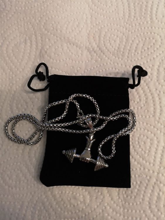 Coole Hantel-Kette für alle Fitness-Fans! Aus robustem Edelstahl, läuft nicht an und rostet nicht. Anhängergröße: 28x28 mm, Gewicht 9,5 g - nicht zu schwer aber gut sichtbar. Farbe: Silber - passt zu allem. Perfekt als Geschenk für Sportler, Geburtstage, Weihnachten oder einfach so! Erinnert dich täglich an deine Fitness-Ziele. Pflege: Nicht beim Sport, Baden oder Schlafen tragen. In Box aufbewahren. Sieht super aus zu Sportkleidung oder auch im Alltag. Macht immer eine gute Figur! Zeige deine Leidenschaft für Fitness!