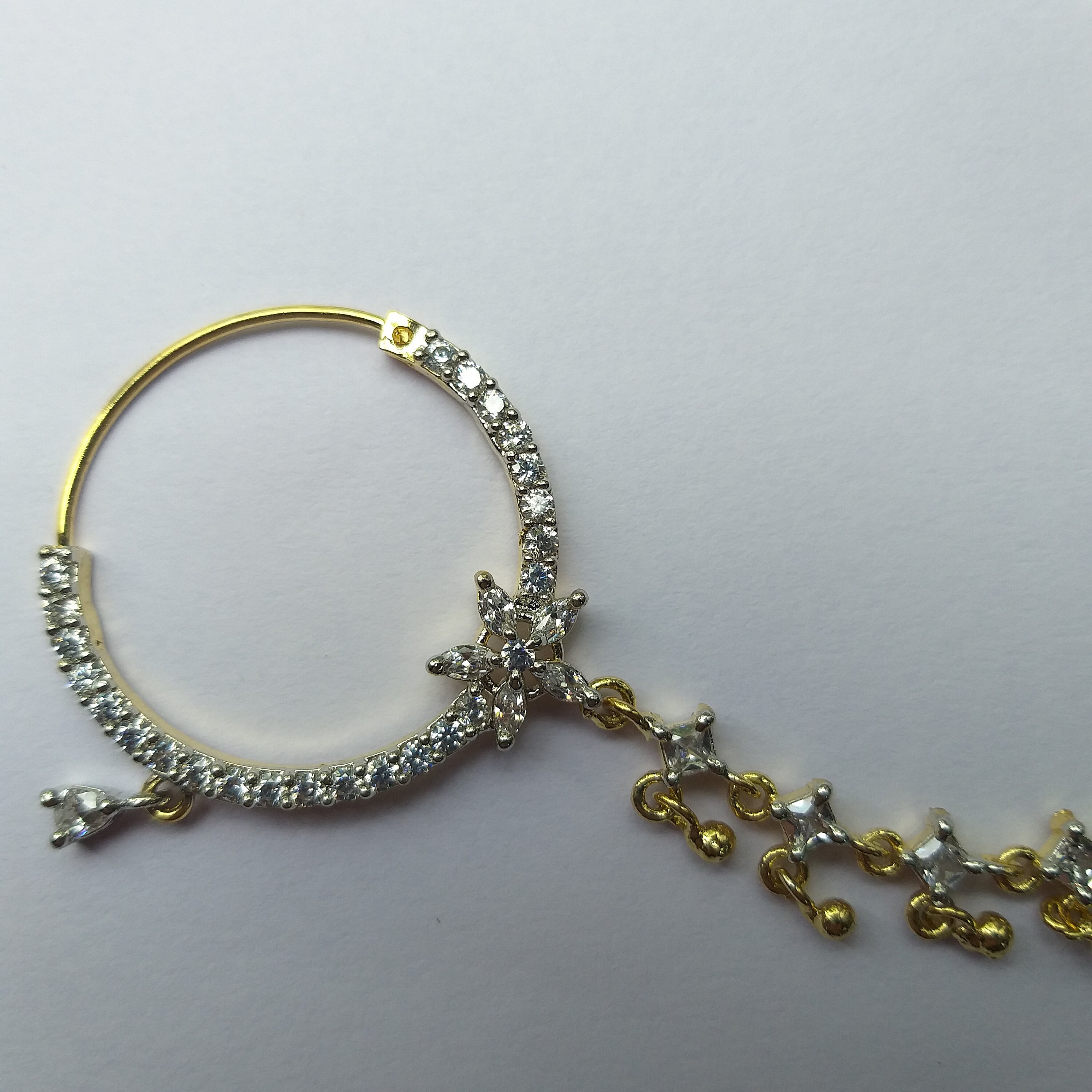 VERDANVERSE Falscher Nasenring Mit Kette - Vergoldet Mit Strass Clip Fake Piercing