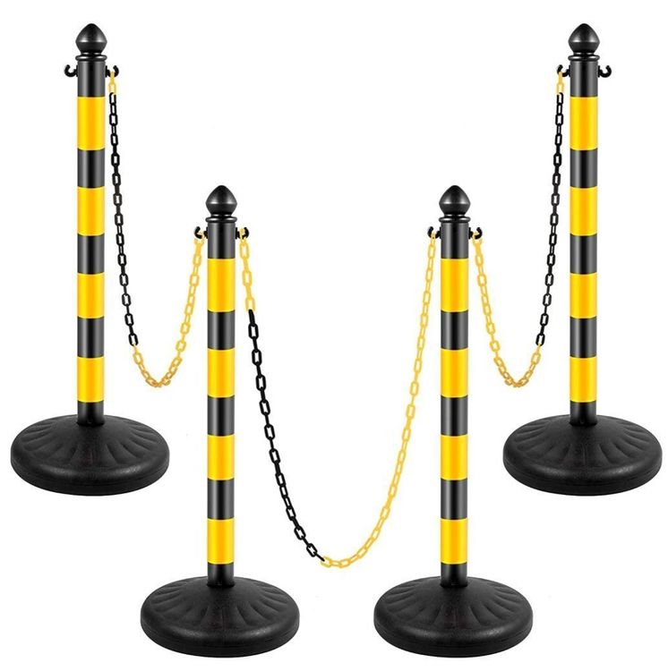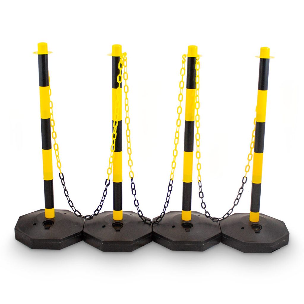 Perfekte Absperrung für jeden Einsatz! Dieses 6er-Set mit gelb-schwarzen Pollern ist super praktisch für Parkplätze, Baustellen oder Events. Jeder Pfosten ist 85cm hoch und hat einen befüllbaren Boden - einfach mit Wasser oder Sand füllen und schon stehen sie bombenfest! Mit 5 Ketten (je 2m lang) und S-Haken kannst du die Absperrung flexibel gestalten. Aus robustem PE-Kunststoff, leicht zu transportieren und witterungsbeständig. Die leuchtenden Farben sind weithin sichtbar, die abgerundeten Kanten sorgen für Sicherheit. Einfach aufstellen und los geht's - ob drinnen oder draußen!
