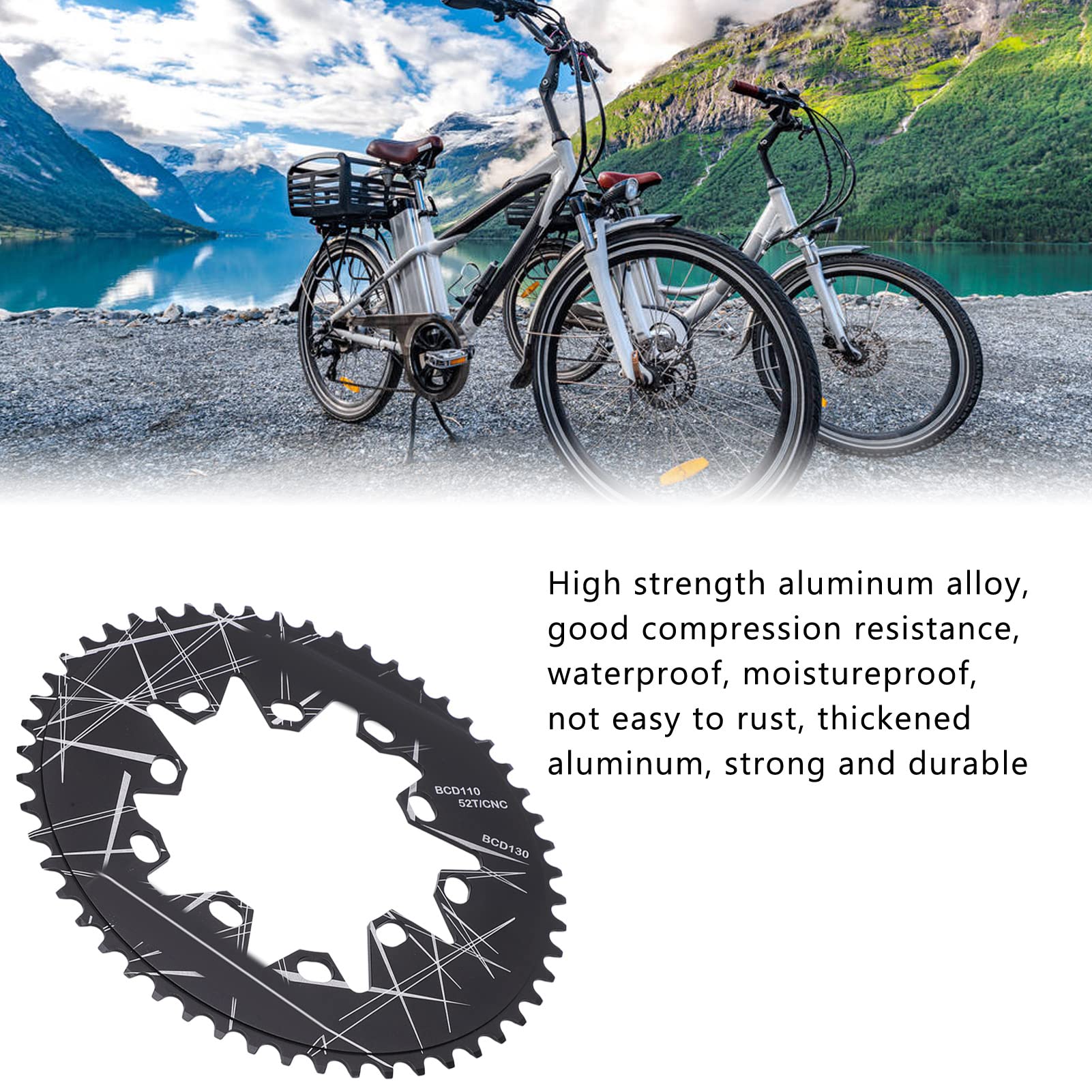Verbessere deine Tretleistung! Dieses ovale Kettenblatt von Kingke sorgt für effizienteres Pedalieren und mehr Komfort auf langen Strecken. Aus hochfester Aluminiumlegierung. \\n\\nTechnische Daten: \\n• Material: Hochfeste Aluminiumlegierung \\n• BCD: 110mm und 130mm \\n• Zahnanzahl zur Auswahl: 52T, 54T, 56T, 58T, 60T \\n• Ovales Design für bessere Kraftübertragung \\n\\nVorteile: \\n• Gleichmäßigere Tretbewegung \\n• Reduzierte Ermüdung \\n• Verbesserte Effizienz \\n• Einfache Installation \\n• Leicht und langlebig \\n\\nKompatibilität: \\n• Rennräder und Klappräder \\n• Fahrräder mit 110/130 BCD \\n• Für ambitionierte Hobbyfahrer \\n• Auch für Wettkampf geeignet \\n\\nWarum oval? \\n• Besserer Kraftfluss im toten Punkt \\n• Gleichmäßigere Geschwindigkeit \\n• Weniger Gelenkbelastung \\n• Angenehmeres Fahrgefühl \\n\\nPerfekt für: \\n• Lange Ausfahrten \\n• Sportliche Ambitionen \\n• Alle, die effizienter fahren wollen \\n• Radfahrer mit Knieproblemen \\n\\nUpgrade dein Fahrrad und genieße ein neues Fahrerlebnis! Einfach montieren und die Vorteile spüren.
