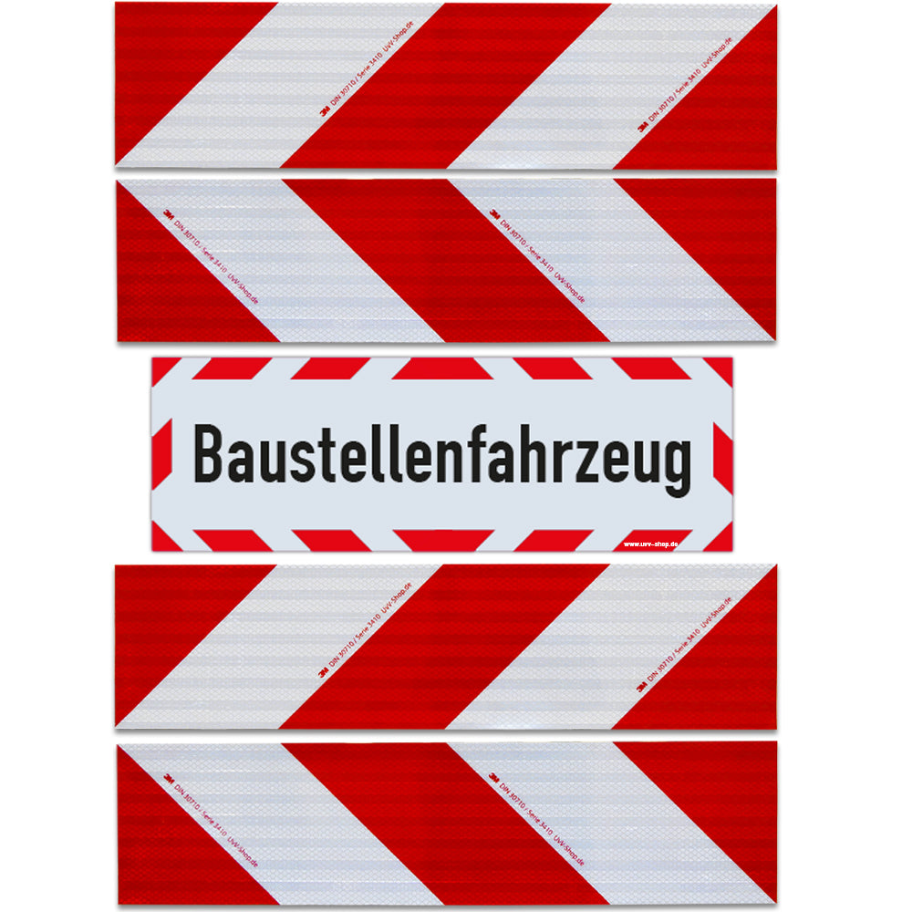 UvV Kfz Reflektierendes Zusatzschild Baustellenfahrzeug - Aufkleber 30x10 Cm RA1 Reflexfolie